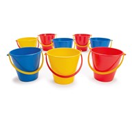 Innehåller hinkar, spadar, sandsåll, krattor, vattenkannor, sandhjul, byggbägare, sand- och vattenskopor samt sandformar i olika storlekar. Tål minusgrader. Av PP. Svanenmärkt, licensnummer 50950001. PVC-fri. Från 2 år.