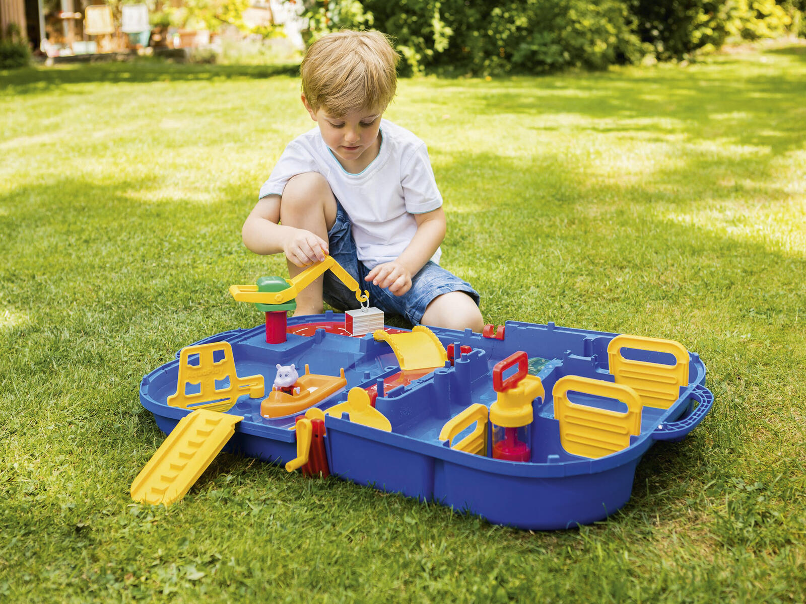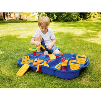 79 delar. Ett roligt kanalsystem som innehåller en massa olika lekstationer, inklusive en lyftkran, slussar, broar och ramper. Detta är ett kreativt och lekfullt sätt att lära sig hur vatten rör sig. Med setet följer också en containerbåt, en transportbåt och ett amfibiefordon samt figurerna Bo, Wilma, Lotta och Nils. Hopfällbar och lätt att förvara. Mått: 156 x 145 x 22 cm. Av PP och PE. PVC-fri. Från 3 år.