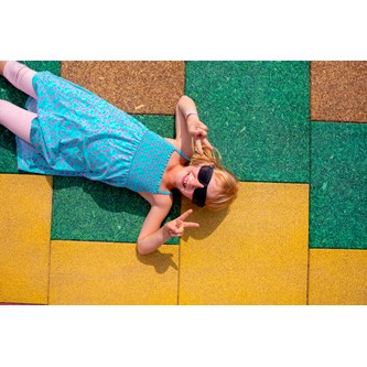 Mattan kan användas på båda sidor och den tandade kanten möjliggör hopkoppling. Till varje pusselbit ingår 4 kantlister. Godkänt fallunderlag enligt europeisk standard EN1177:2018 för inomhusanvändning till en fallhöjd på 145 cm. Mått: 100x100x4 cm.