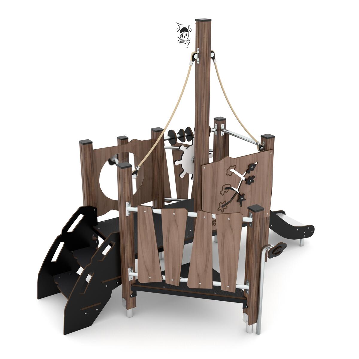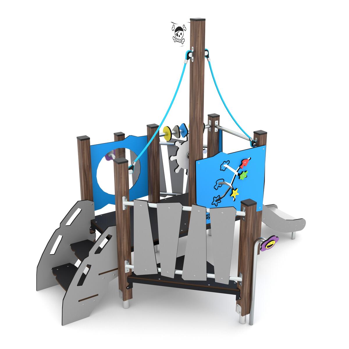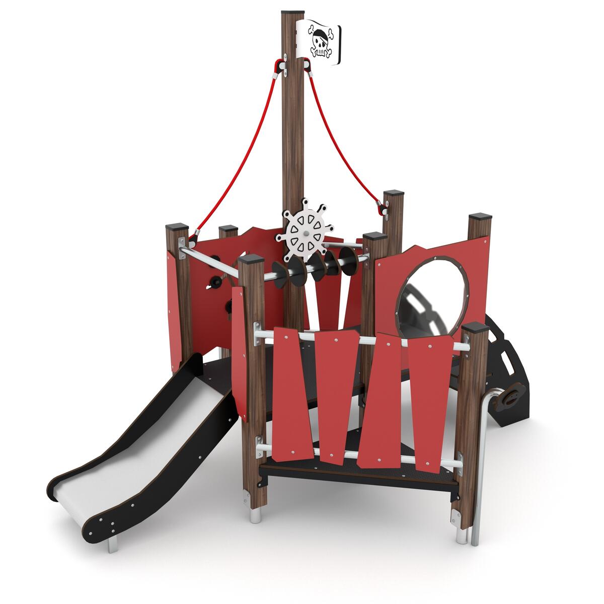 Lekställning med pirattema med bl.a. trappa, rutschkana och lekpanel. Vid installation ska alltid den medföljande manualen användas. Den senaste versionen finns att tillgå på begäran. Leverantörens artikelnummer Minisweet 0111