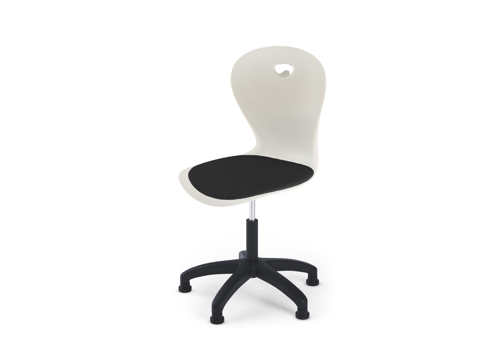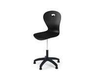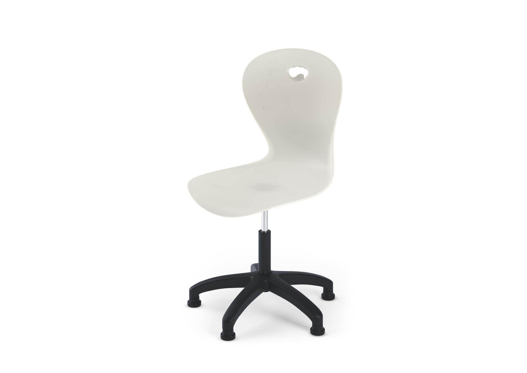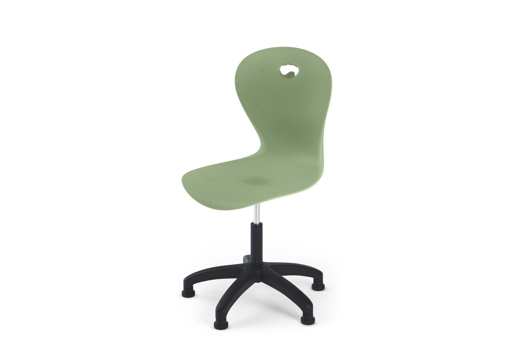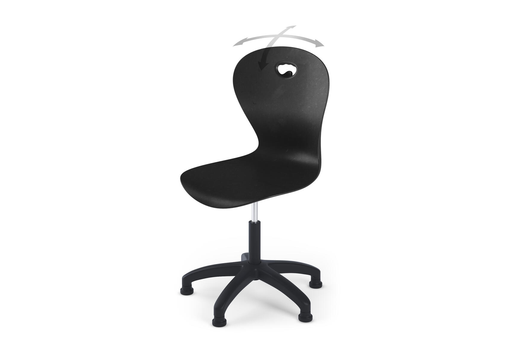 Plastskal av 100 % återvunnet material. Stolen uppfyller EN 1729-1 Sixemark 5&6, vilket innebär att användare mellan 146 och 188 cm sitter bekvämt och ergonomiskt riktigt. Väskkrok på baksidan. Moviflexmekanismen gör att man kan vippa på sitsen åt alla håll, vilket uppmuntrar ett aktivt sittande. Svart plastkryss med hjul. Mått: Sitthöjd 38-50 cm. Sitsbredd 42. Sitsdjup 40 cm. Välj till klädd sits i 100 % återvunnet material.