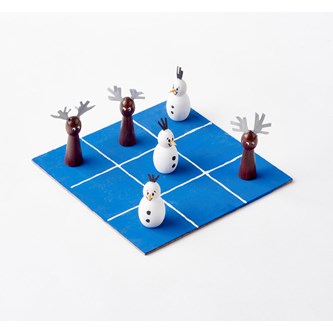 Måla dina gubbar. Tre bruna renar och tre vita snögubbar.