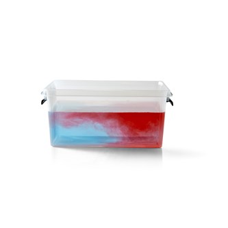 Häll varmt rött vatten i blått kallt vatten och se hur det varma vattnet stiger och åskmolnen bildas.