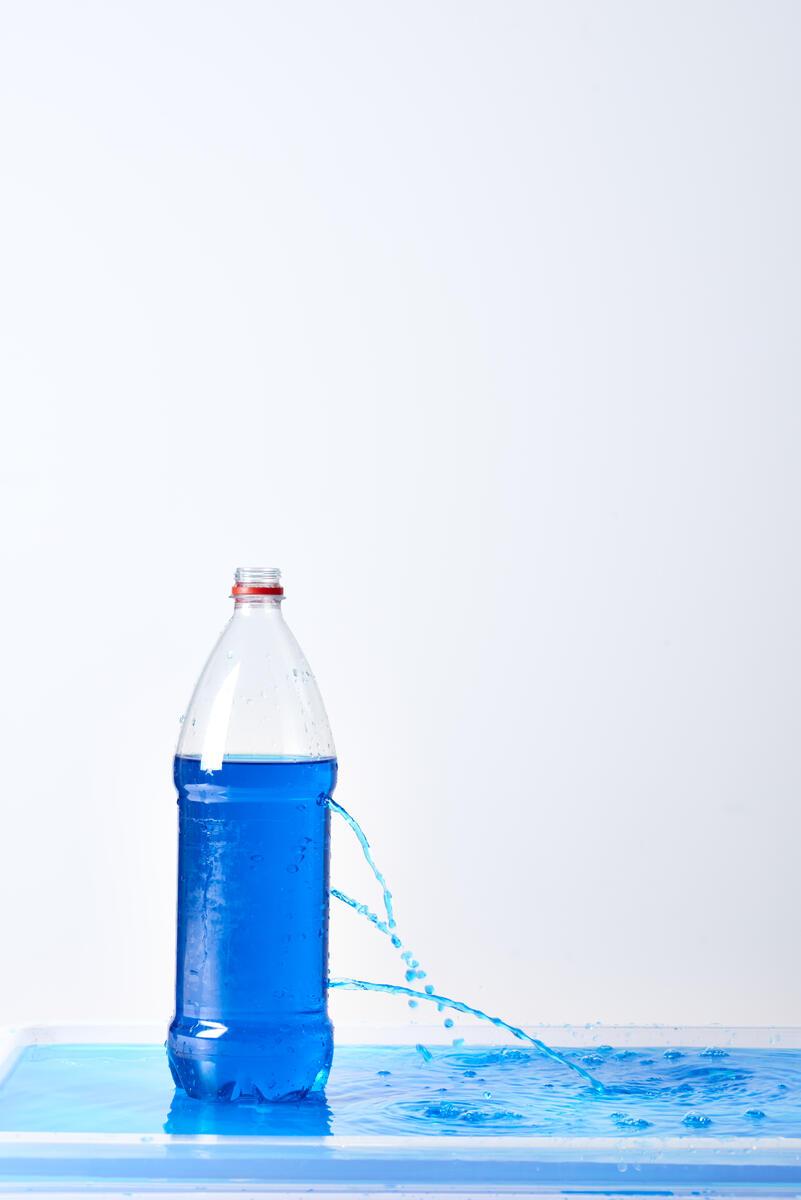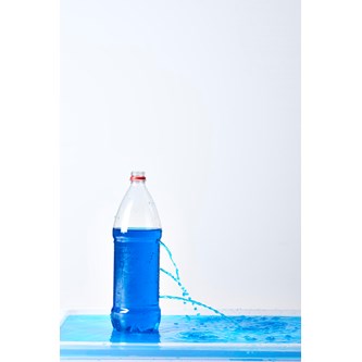 - Häll i vatten i flaskan och se hur vattnet sprutar ut genom hålet. Ha en balja under eller stå över en vask alternativt utomhus.