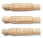 3 st/fp. Mönstrade lerkavlar i trä med tre olika y...