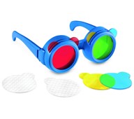Spännande glasögon med lösa linser i olika färger. Mixa och matcha för att skapa en regnbåge av färger och mönster. Lösa linser som förs in i bågarna. Innehåller 1 par glasögon, 6 färgade linser samt 2 insektslinser som visar hur en insekt ser världen. Från 4 år.