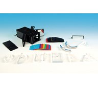 Utrustning för optik till elevarbeten. Ljuskälla 12 V/3 A medföljer. Passar både för arbeten inom optik och färglära på bordsytor, t.ex. på pulpet. Innehåller linsserie och spegelmodeller som ger många möjligheter till färgblandning med hjälp av filter. Anvisningar på engelska med färdiga övningsarbeten. Ansluts till spänningsaggregat.