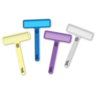 Ett enkelt hjälpmedel för att ringa in och fokusera på ett ord. Den lilla ramen som sitter på en pinne fästs på en ring som sätts på fingret. Det blir som en naturlig förlängning på fingret. Innehåller 4 ramar i olika färger (gul, blå, lila och genomskinlig) samt en ring. PVC-fri.