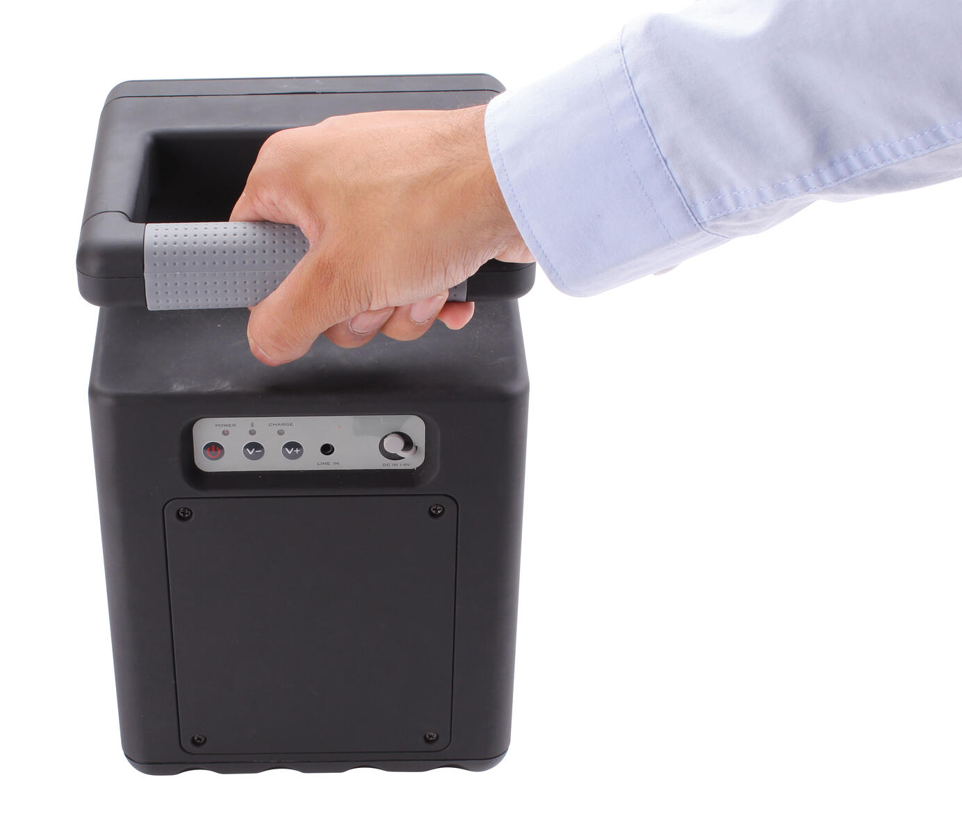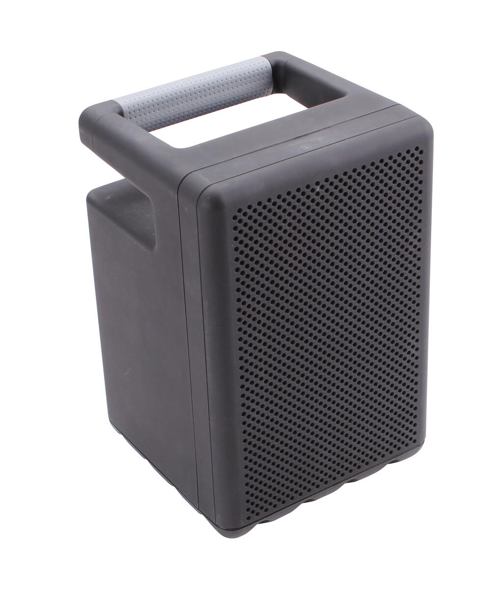 Trådlös, portabel högtalare som kopplas till smartphone eller platta. Koppla in de två tillhörande mikrofonerna, en mixer eller annan ljudkälla via Bluetooth. Inbyggd multimediaspelare (USB), digital LCD-display, inbyggd equalizer, gitarr-, stereo line- och mikrofoningångar samt mix output (XLR). Fjärrkontroll och kabel (4 m NL2). Input: 3,5 mm, 6,3 mm, RCA, USB och XLR (3 stift). Output: XLR (3 stift). Mått: L315xB380xH595 mm.