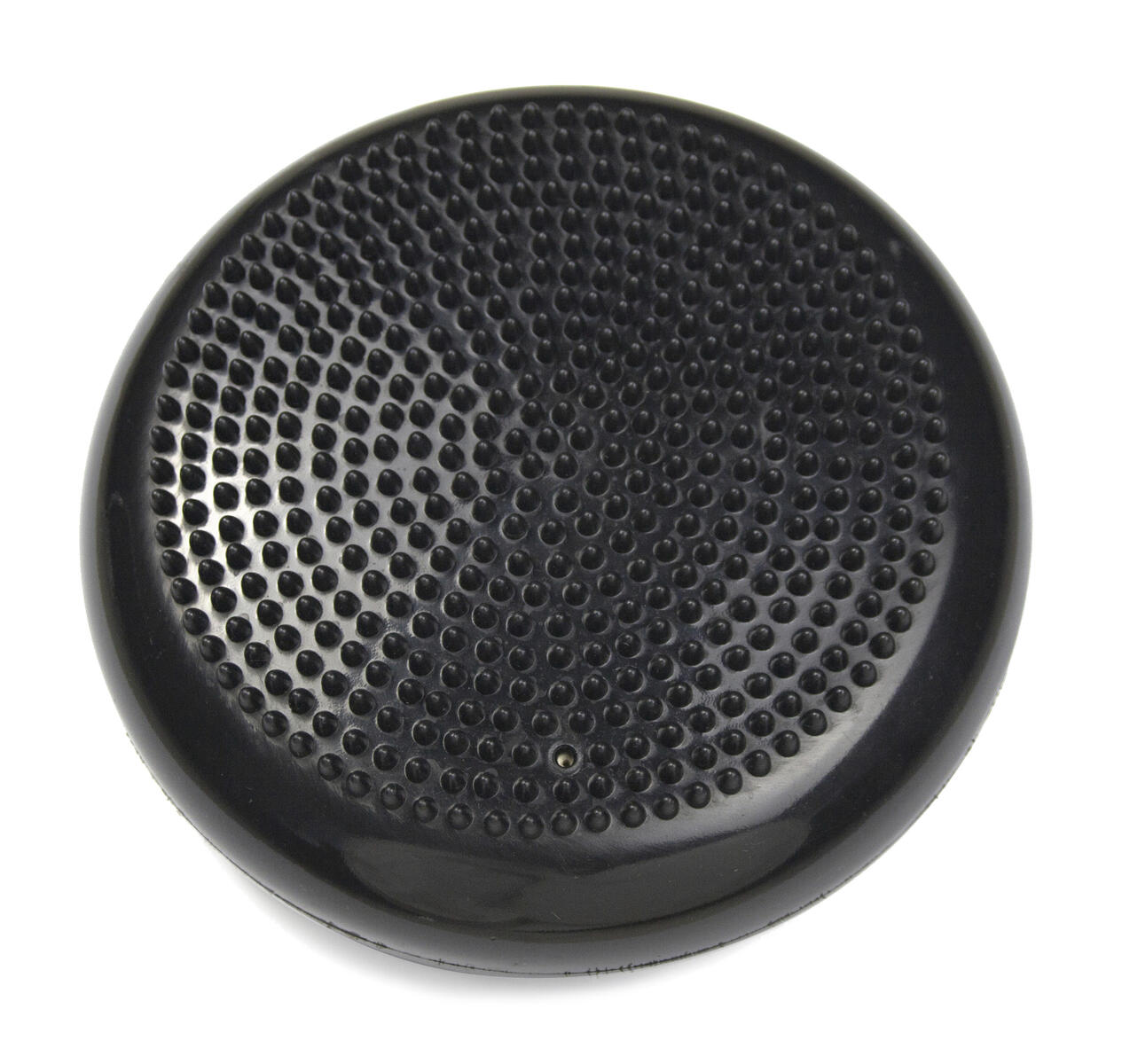 Uppblåsbar rund balans/luftkudde med noppor på ena sidan och små kulor på andra sidan. Kan även användas som massagekudde Mått: diameter 32 cm. Av PVC, fri från ftalater.