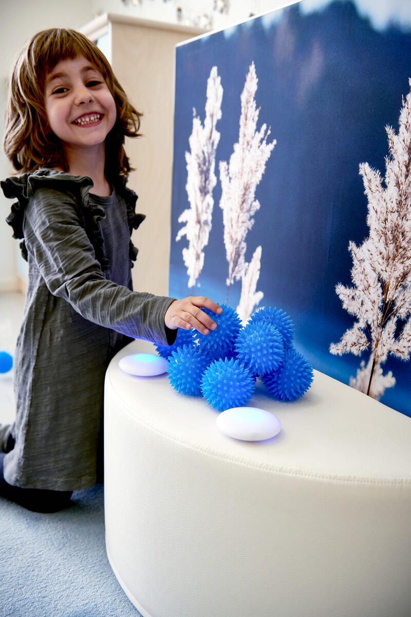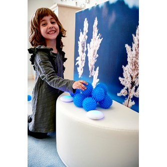 6 st/fp. Fascinerande bollar med olika taktila ytor. Lyser upp i 60 sekunder när de skakas. De är rogivande och tränar finmotoriken och öga-handkoordinationen. Rulla dem i lera för att skapa spännande mönster. För de minsta barnen tränas orsak och verkan och stimulusrespons. Mått: 84 mm. Av ABS och TPE. PVC-fri. Från 10 månader.