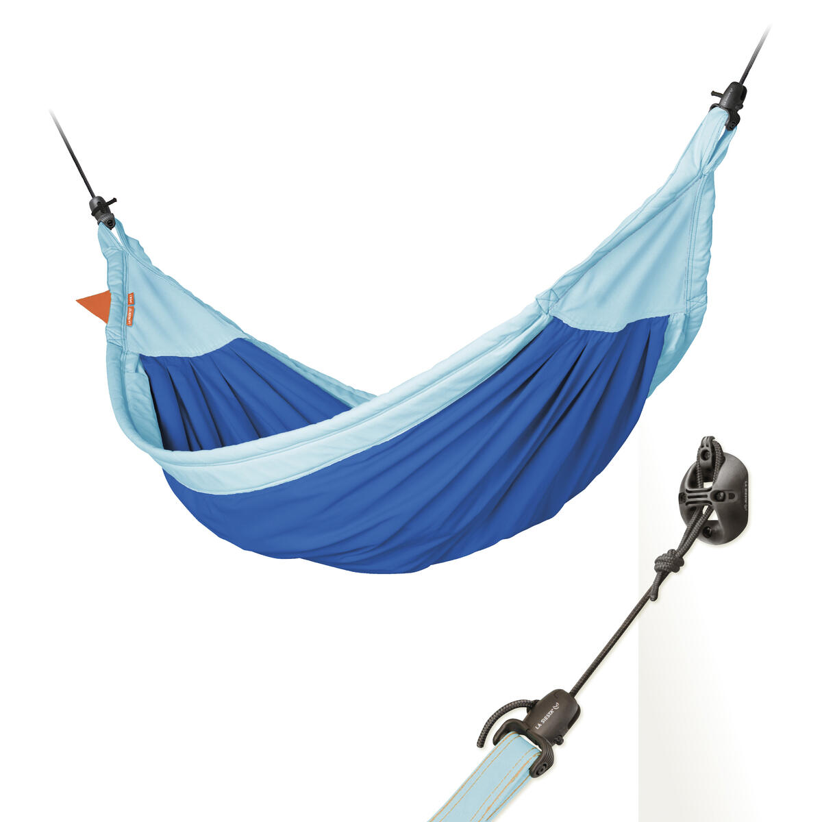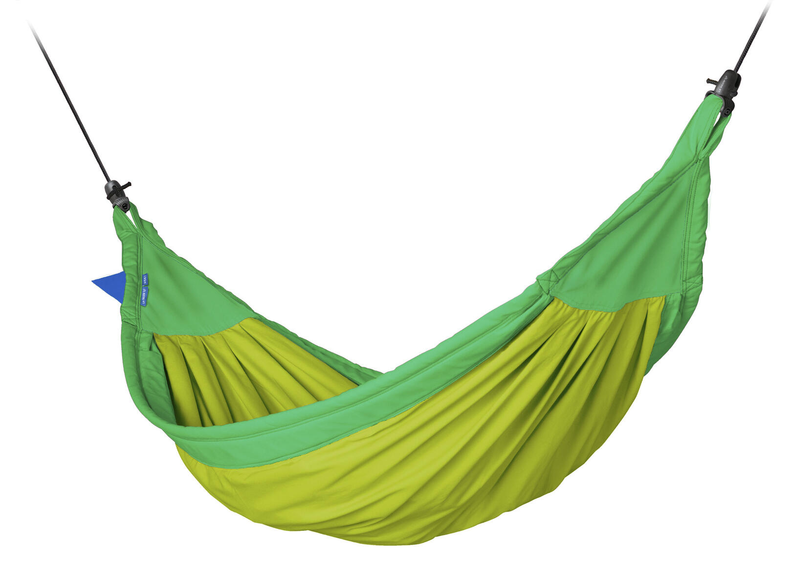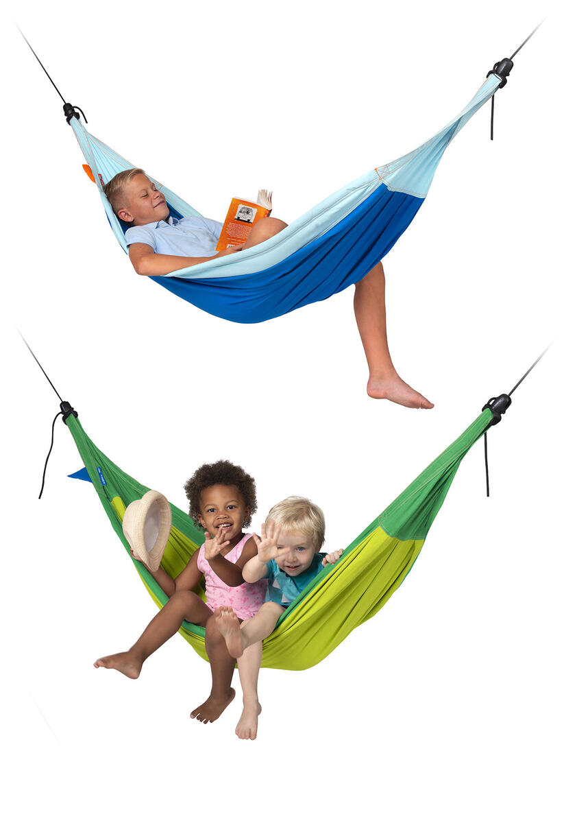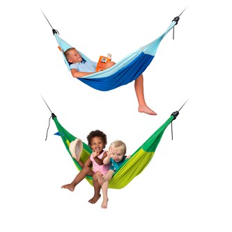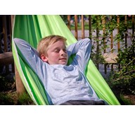 Hängmatta för barn. Upphängning i ekologisk bomull som är enkel att fästa. Säkerhetskroken SmartLock förhindrar att hängmattan fastnar och gör att den kan sättas upp och tas ner med bara några få enkla handgrepp. Kräver ett avstånd på minst 3 m. Mått: L210xB110 cm. Maxvikt 80 kg. Av ekologisk bomull, PU och polyester. Fintvätt i 30 °C. Maxvikt 80 kg. 3–12 år.