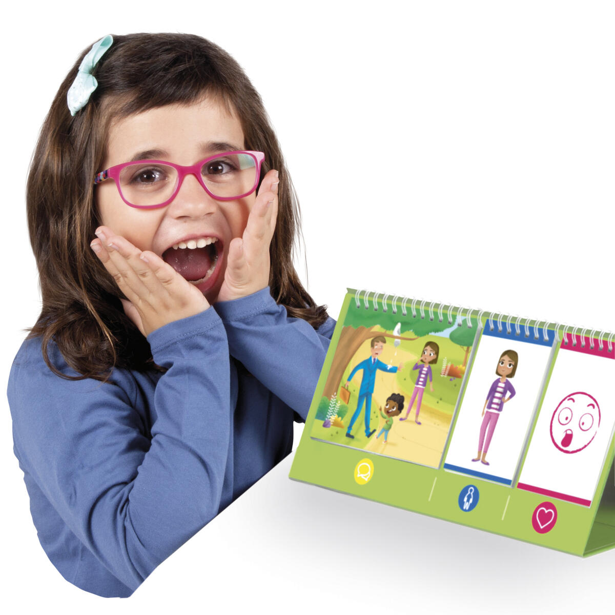 Titta på de olika situationerna, sätt dig in i någon av karaktärerna på bilden och förklara hur den känner sig. Detta uppmuntrar till att utveckla sociala färdigheter som empati, att känna igen olika känslor och att utveckla ett emotionellt samvete.
