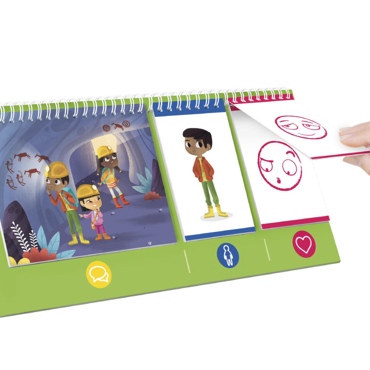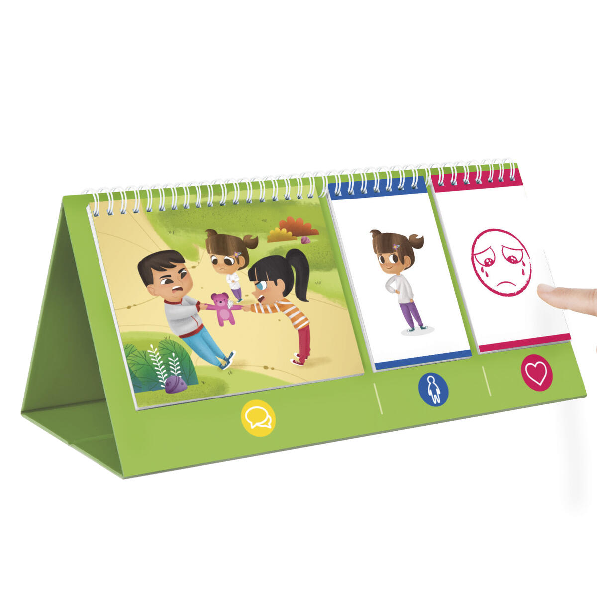 Ett spel för att beskriva känslor är det första steget för att utveckla ett emotionellt samvete, få bättre självkontroll och reglera sina känslor. Det hjälper till att identifiera våra egna känslor, känna igen dem hos andra personer och ta beslut om vårt eget uppförande. PVC-fri.