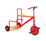 En populär modell som är idealisk för rollekar. Den trehjuliga cykeln är utrustad med kraftiga däck, baksätesplattform, dragkrok och säkerhetshandtag som extra passageraren kan hålla sig fast i. Cykeln levereras monterad. Mått: L107xB66xH71 cm. Sitthöjd 42/32 cm. Av stål, PP och PU. Sits och fotplatta av FSC-märkt trä. PVC-fri. Från 4 år.