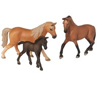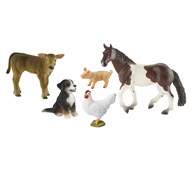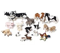 Ett stort set med bondgårdsdjur som är handmålade och av mycket fin kvalitet. Innehållet kan variera, men antalet figurer är samma. Ett av de minsta djuren, en kanin, mäter 4,5x2,5 cm, ett av de största, en hingst, mäter 16,3x10,9cm. Av ftalatfri PVC. Från 3 år.