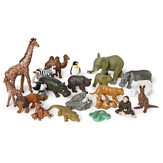Vilda djur i enklare utförande av TPU. Innehåller elefanter, giraff, flodhäst, apa, kamel, zebra, känguru, lejon, struts, björn, isbjörn och pingvin. Från 3 år.