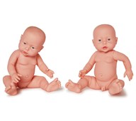 Dockor med verklighetstrogna hudveck och hård kropp. Två flickor och en pojke. Av PVC, utan förbjudna ftalater. Från 3 år.
