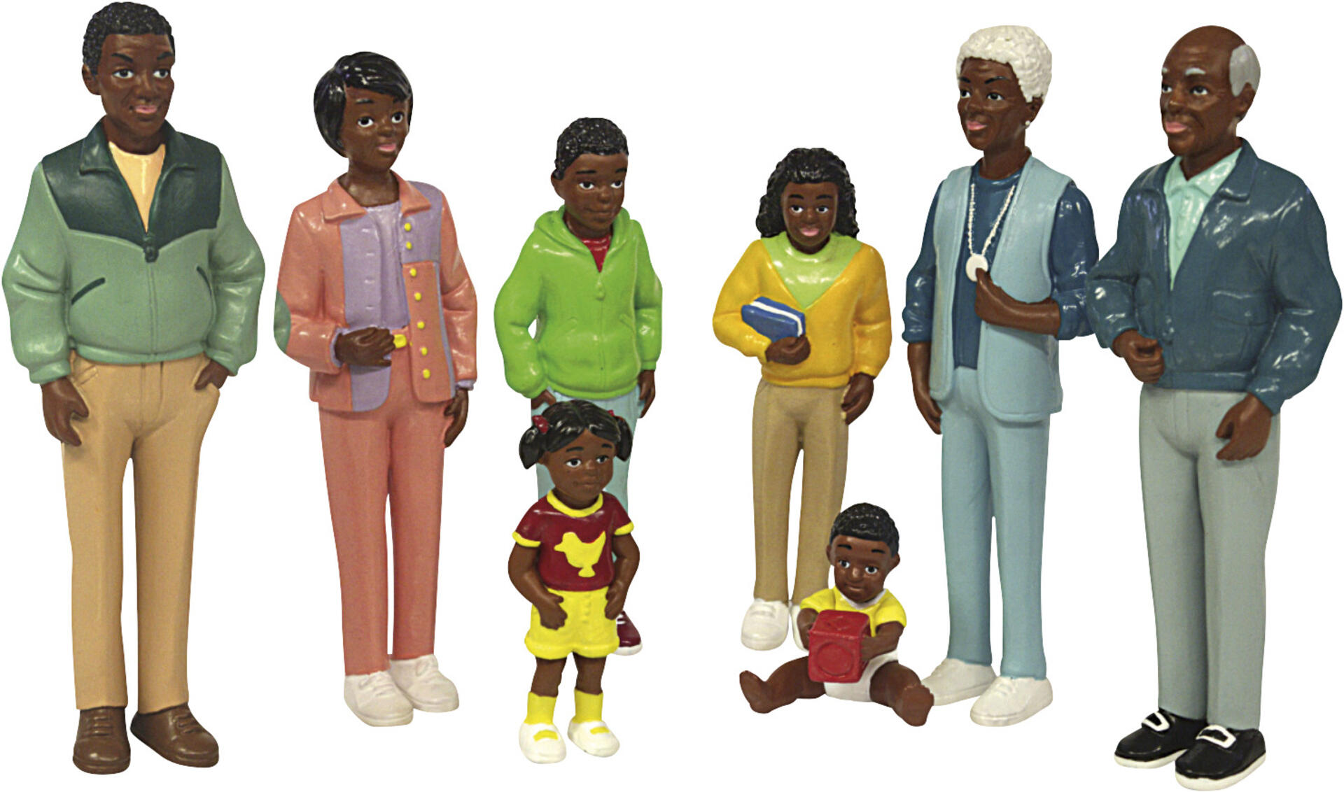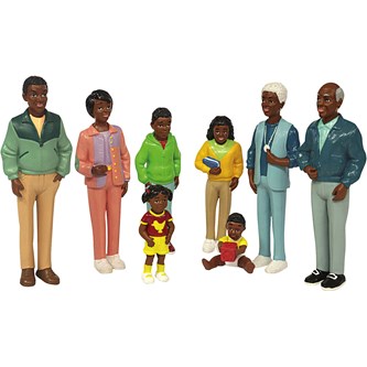 Ett set med lekfigurer i olika åldrar och med olika utseende. Utvecklar barnens förståelse och respekt för olika roller, kön och mångfald. Av PVC, utan förbjudna ftalater. Från 3 år.