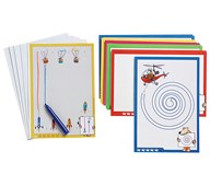 Här bekantar sig barn med grafiska avstånd, att följa mönster och öva sig inför skrivning. Innehåller 30 aktivitetskort (20,5x30 cm) och 4 kraftiga, transparenta plastfickor som är avtorkningsbara. Använd med fördel whiteboardpennor, ingår ej. Från 4 år.