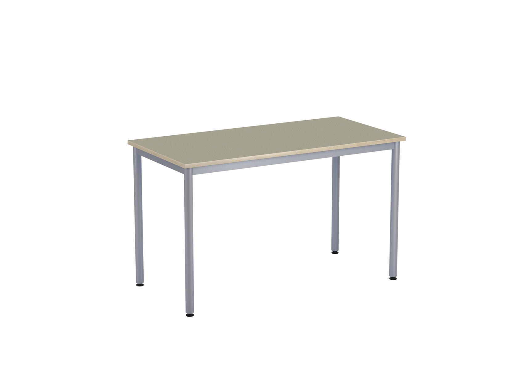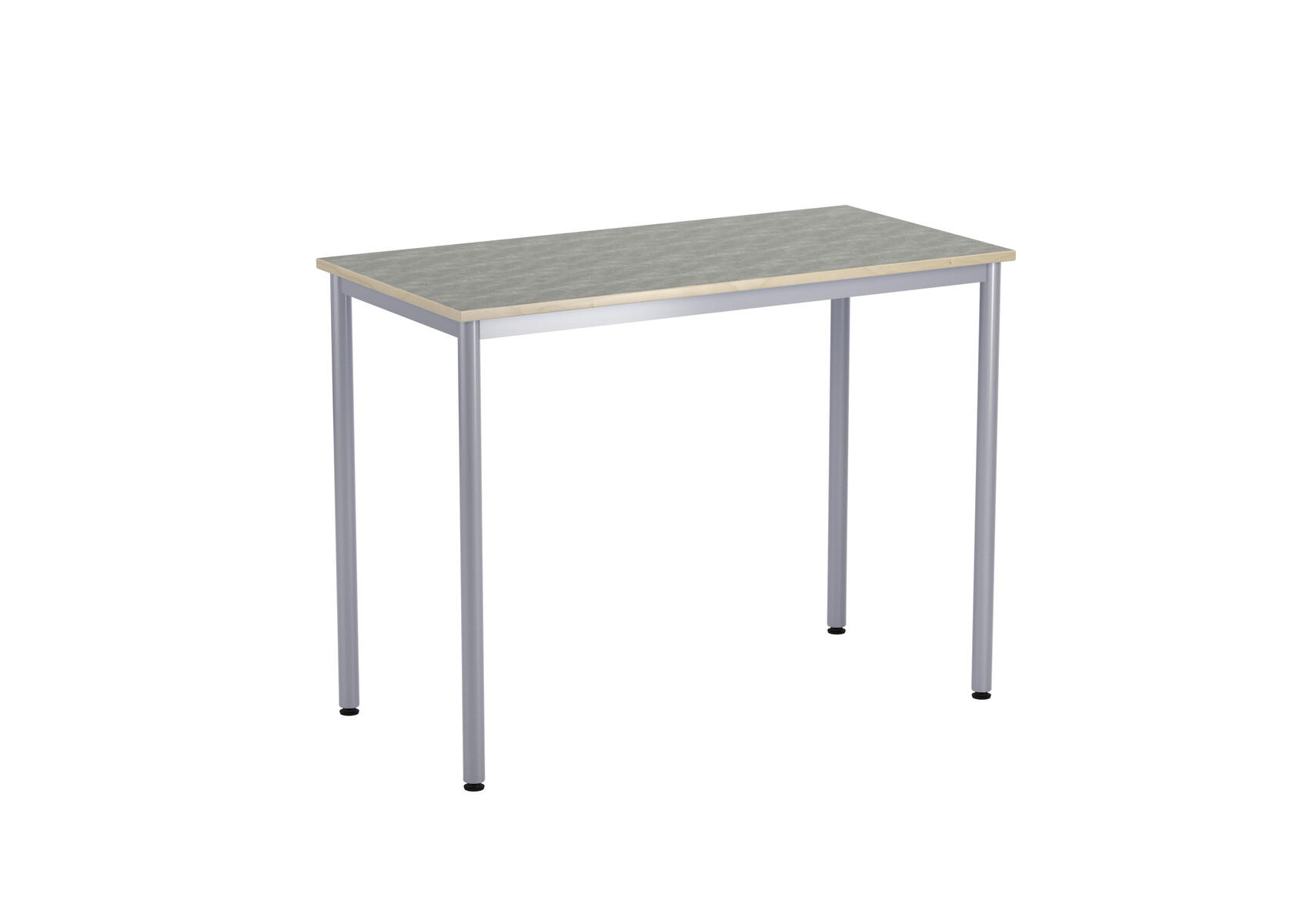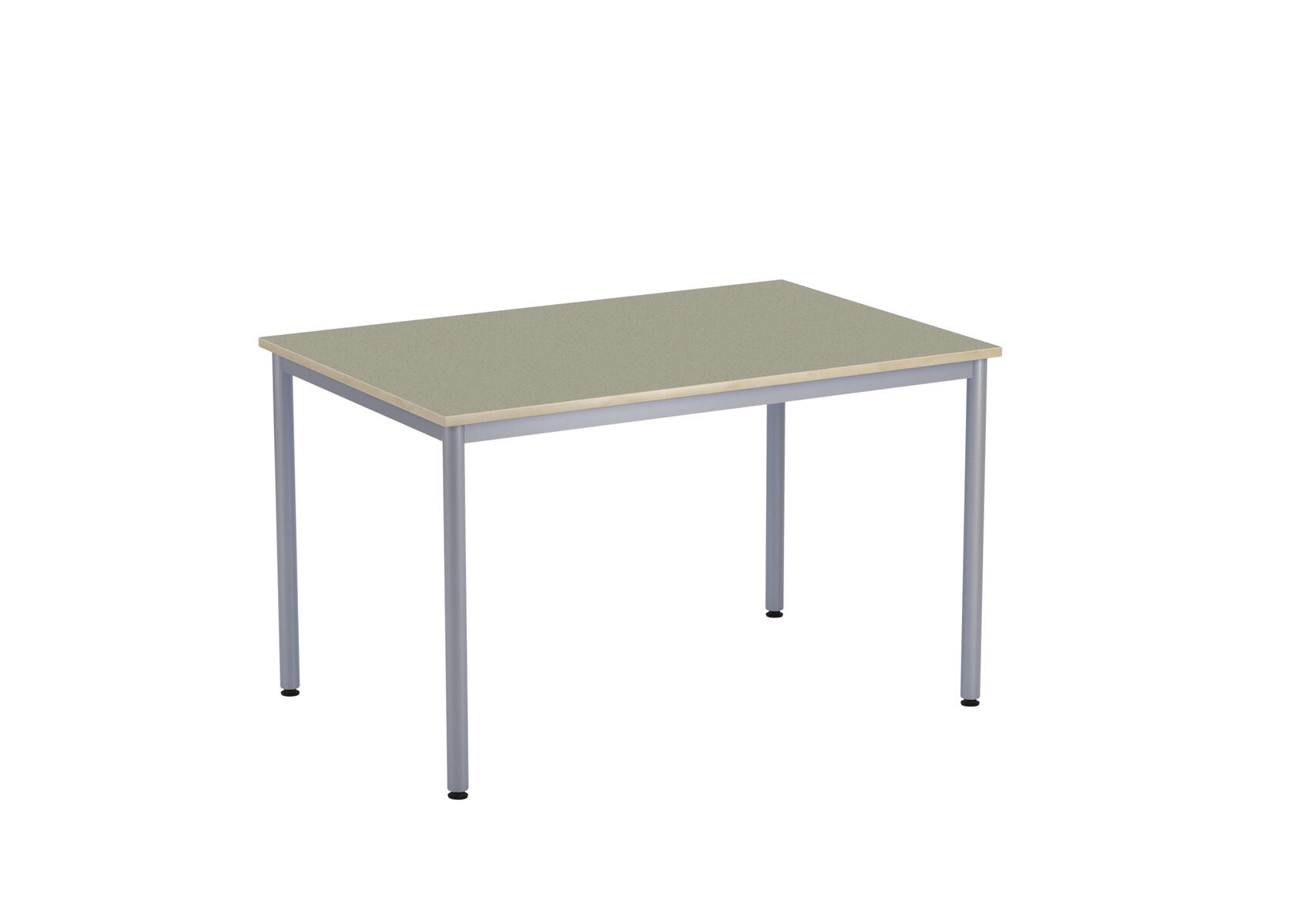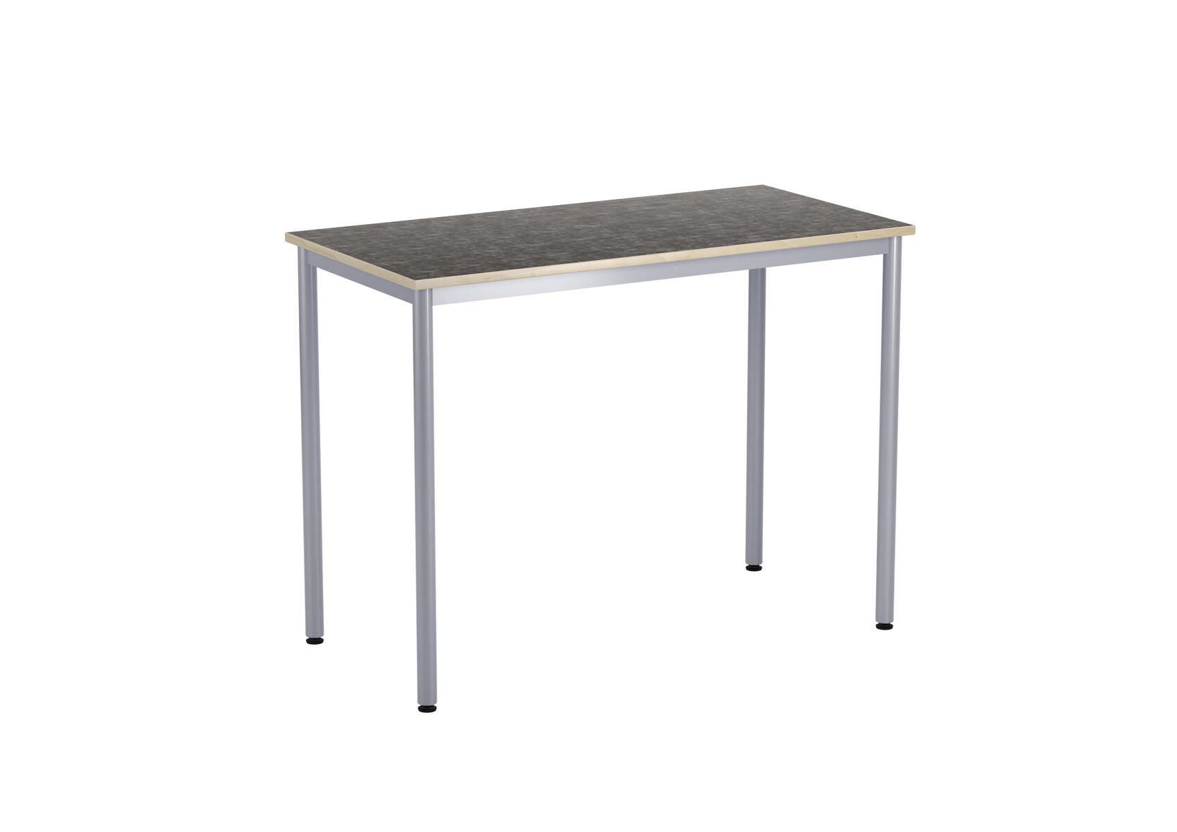 Bordsskiva i laminat. Ställbara tassar för anpassning till ojämna ytor. Stativet lackerat i silver RAL 9006.
