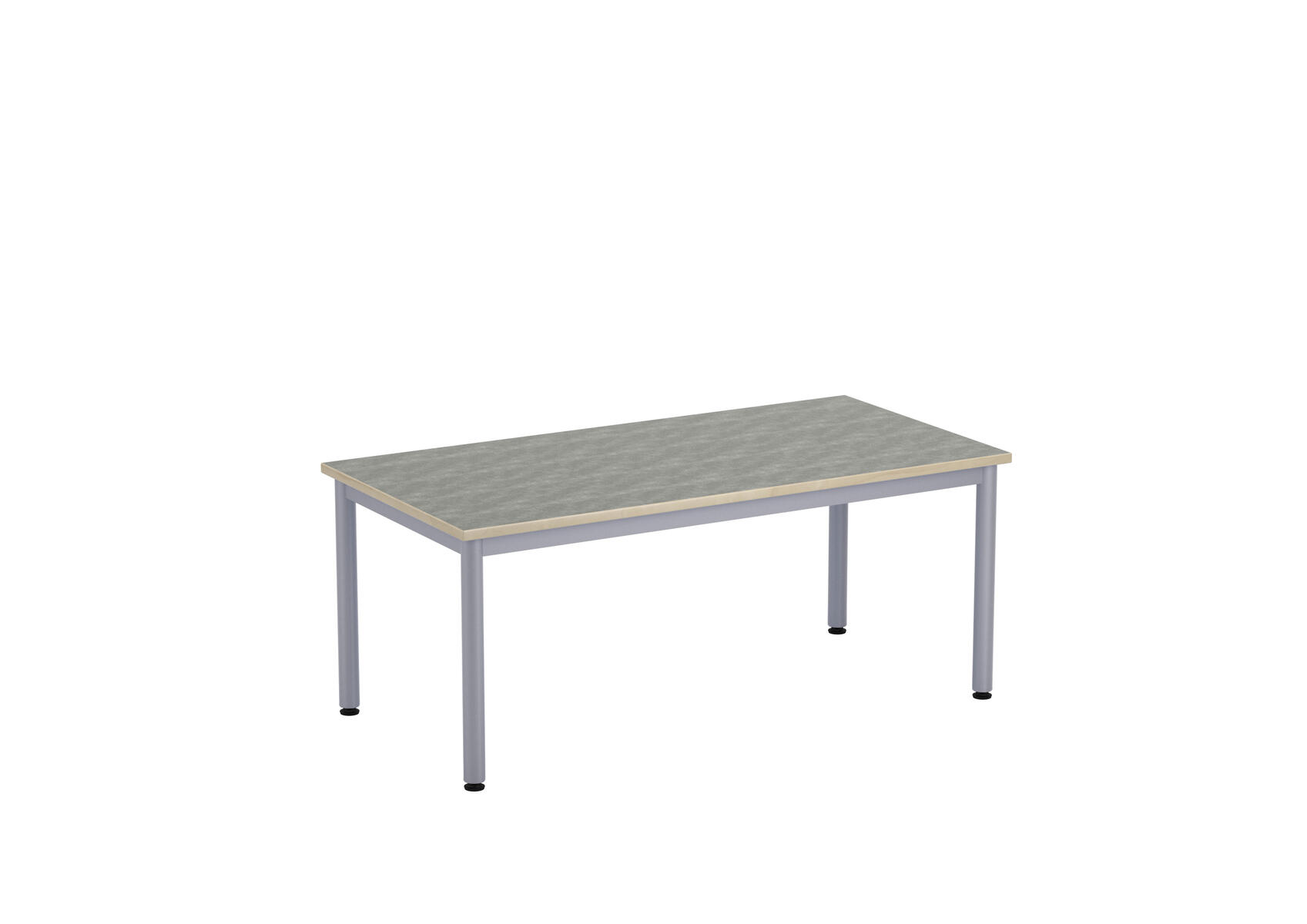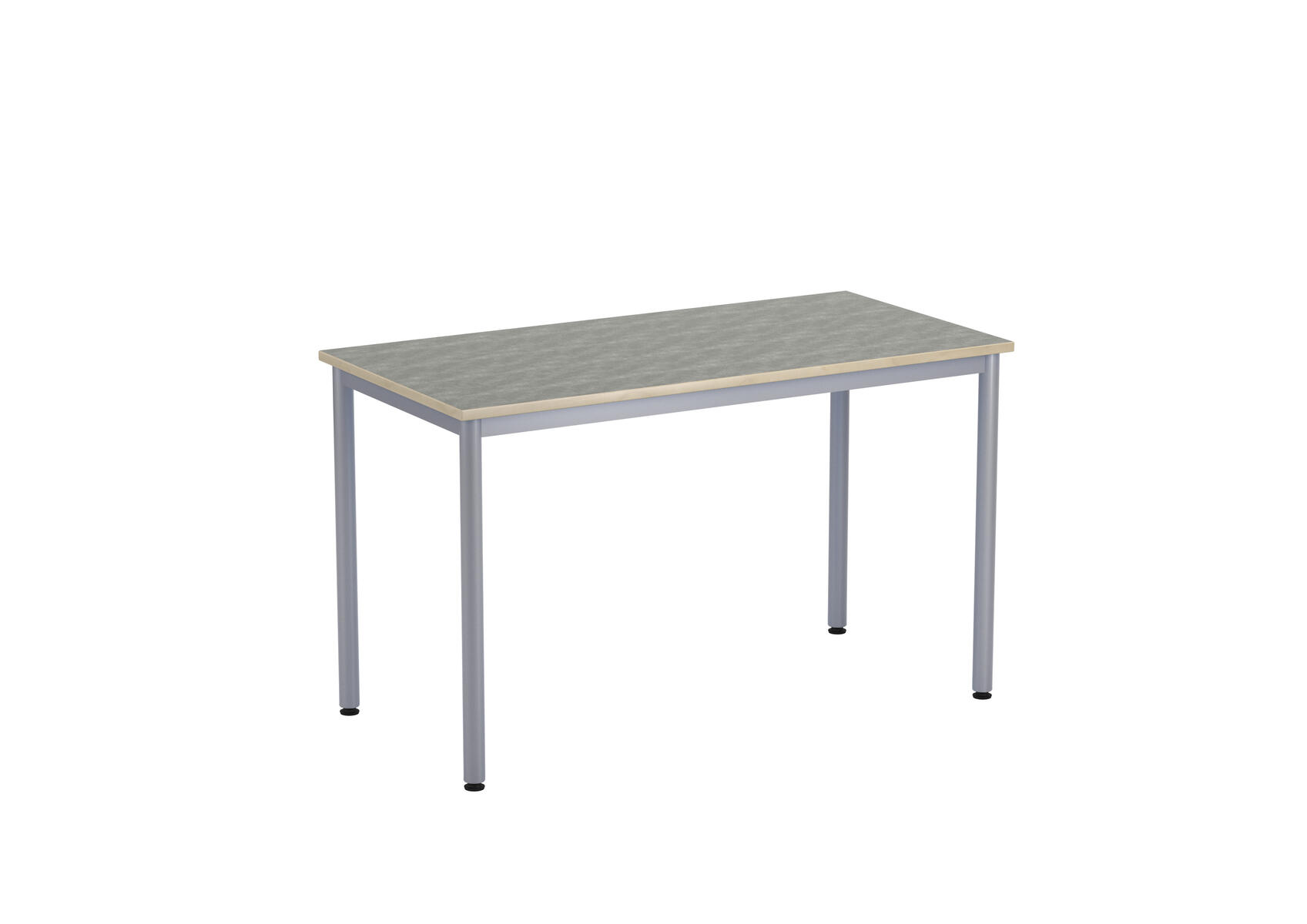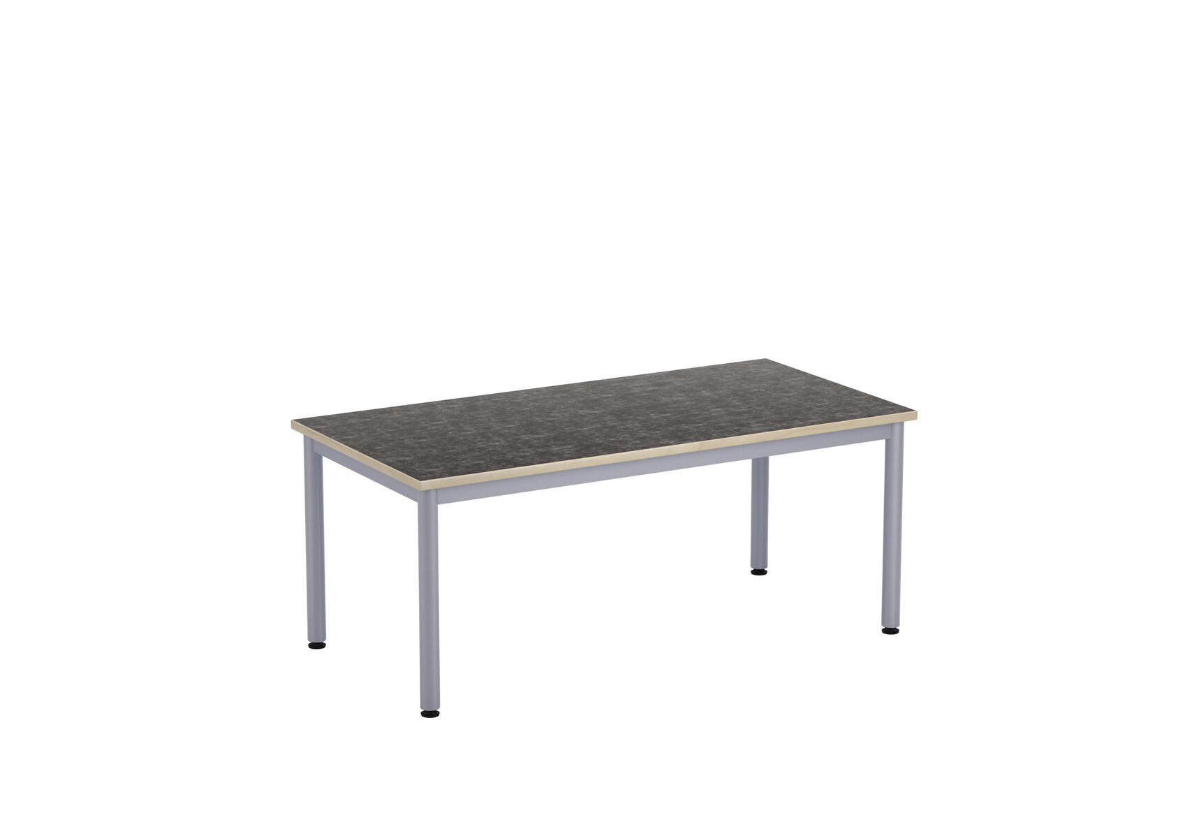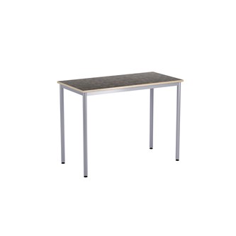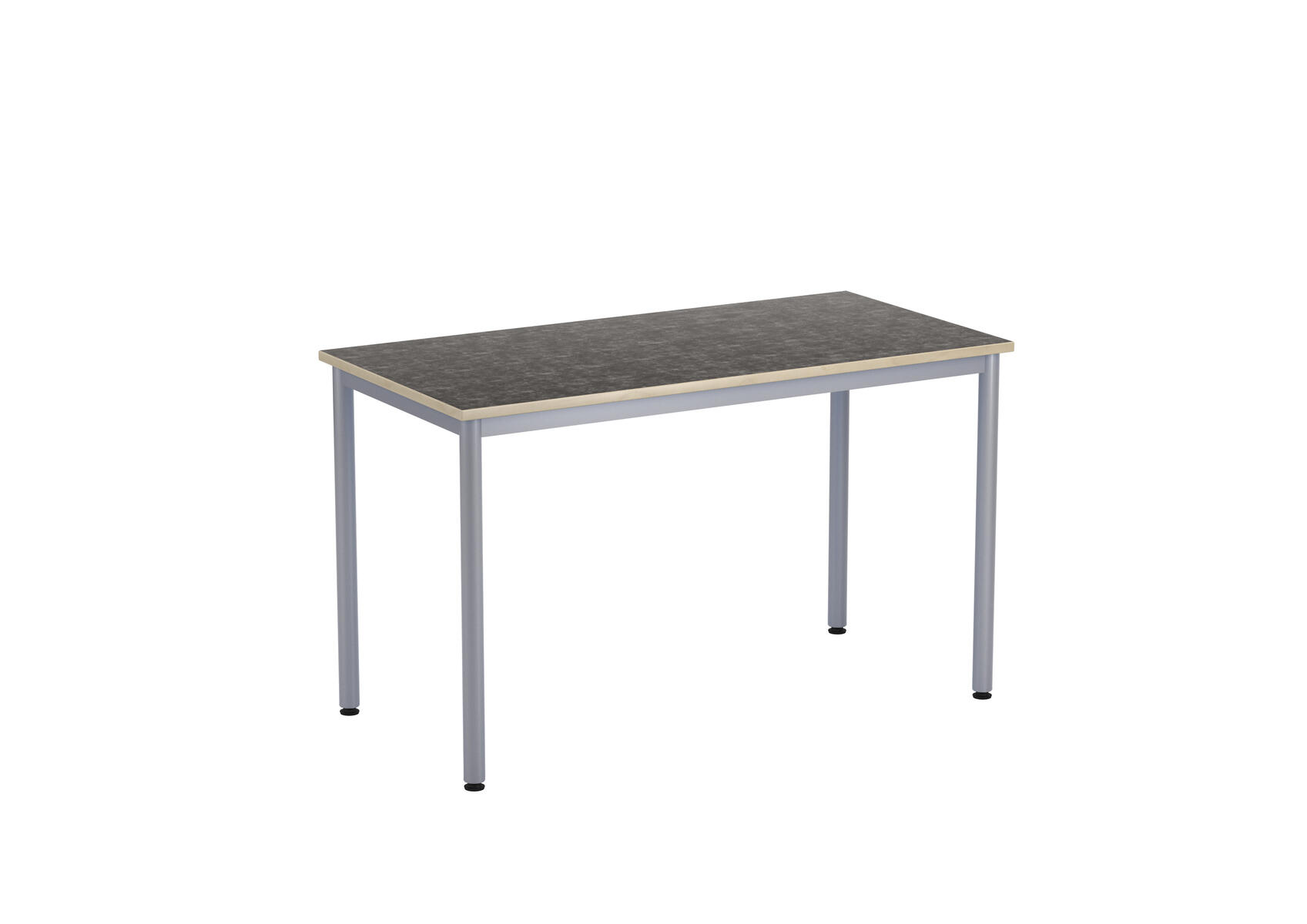 Bordsskiva i laminat. Ställbara tassar för anpassning till ojämna ytor. Stativet lackerat i silver RAL 9006.