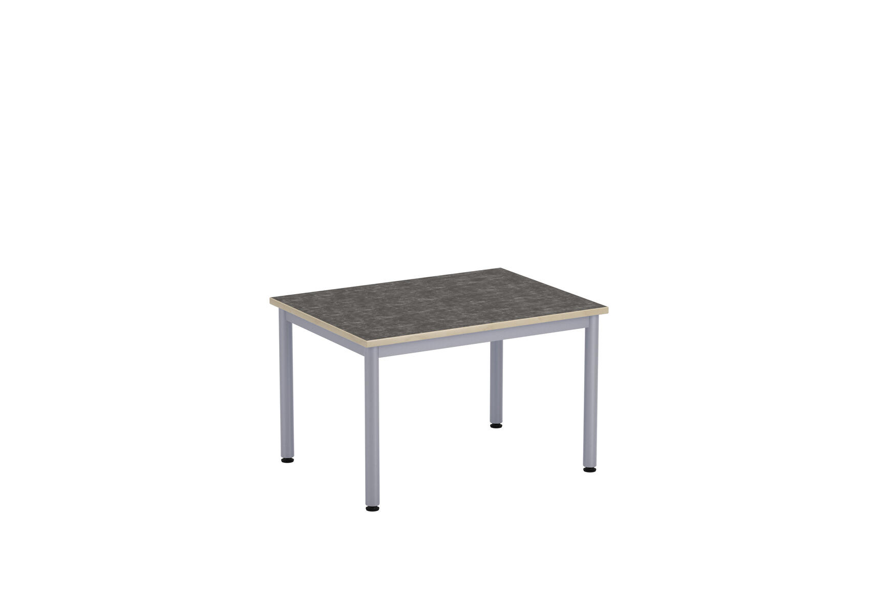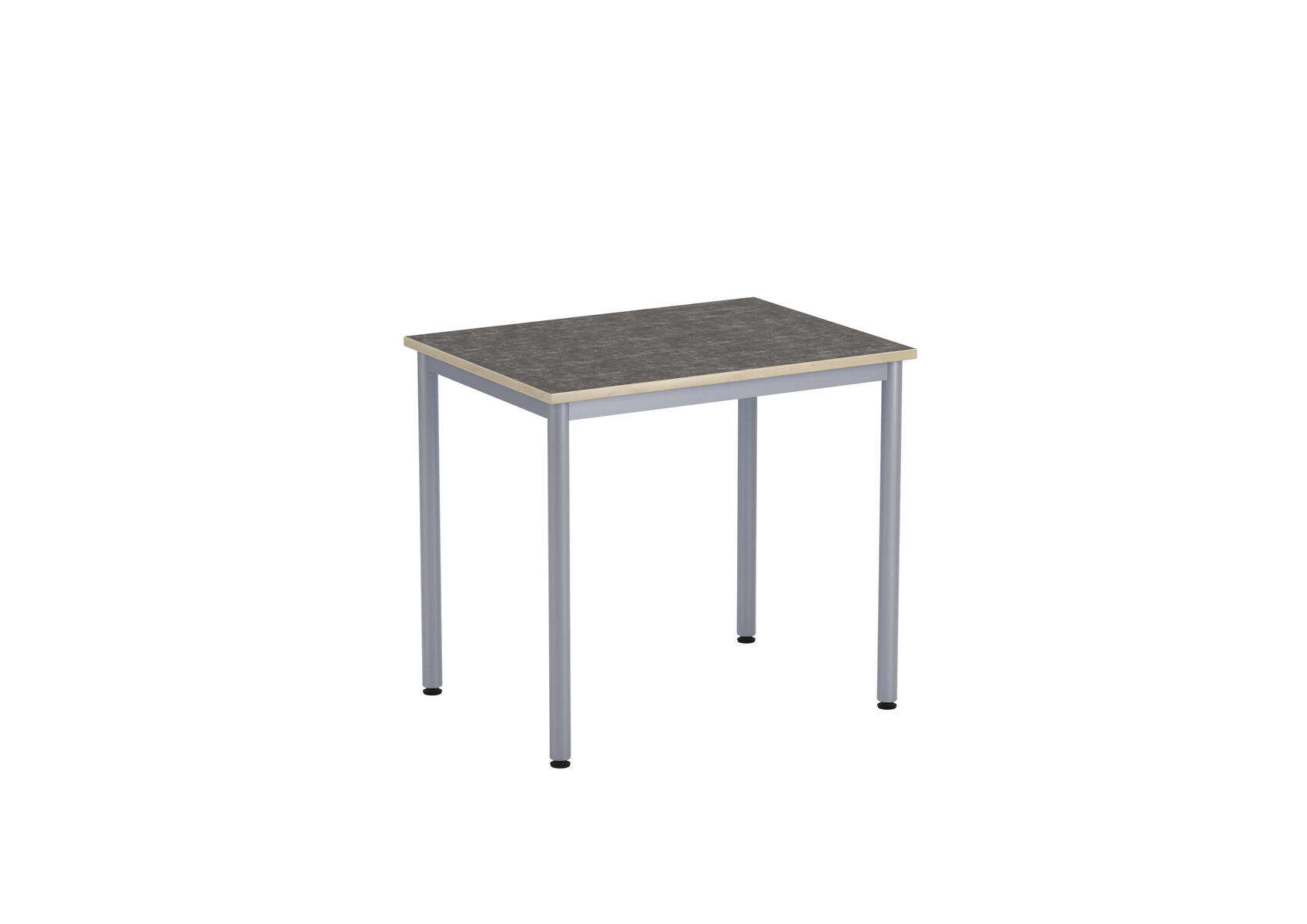 Bordsskiva med ljuddämpande yta i linoleum och ljudabsorbent på undersidan. Ställbara tassar för anpassning till ojämna ytor. Stativet lackerat i silver RAL 9006.