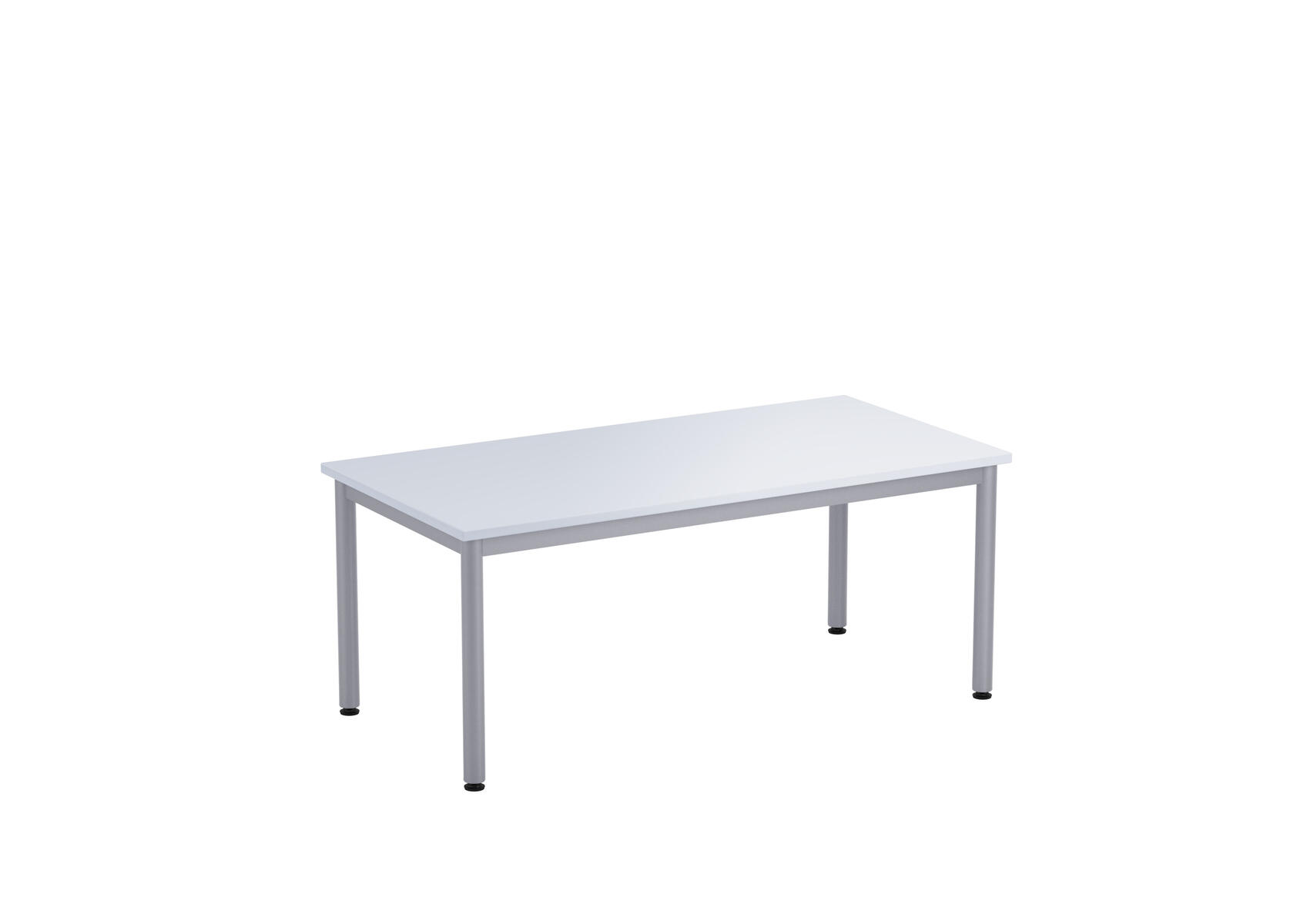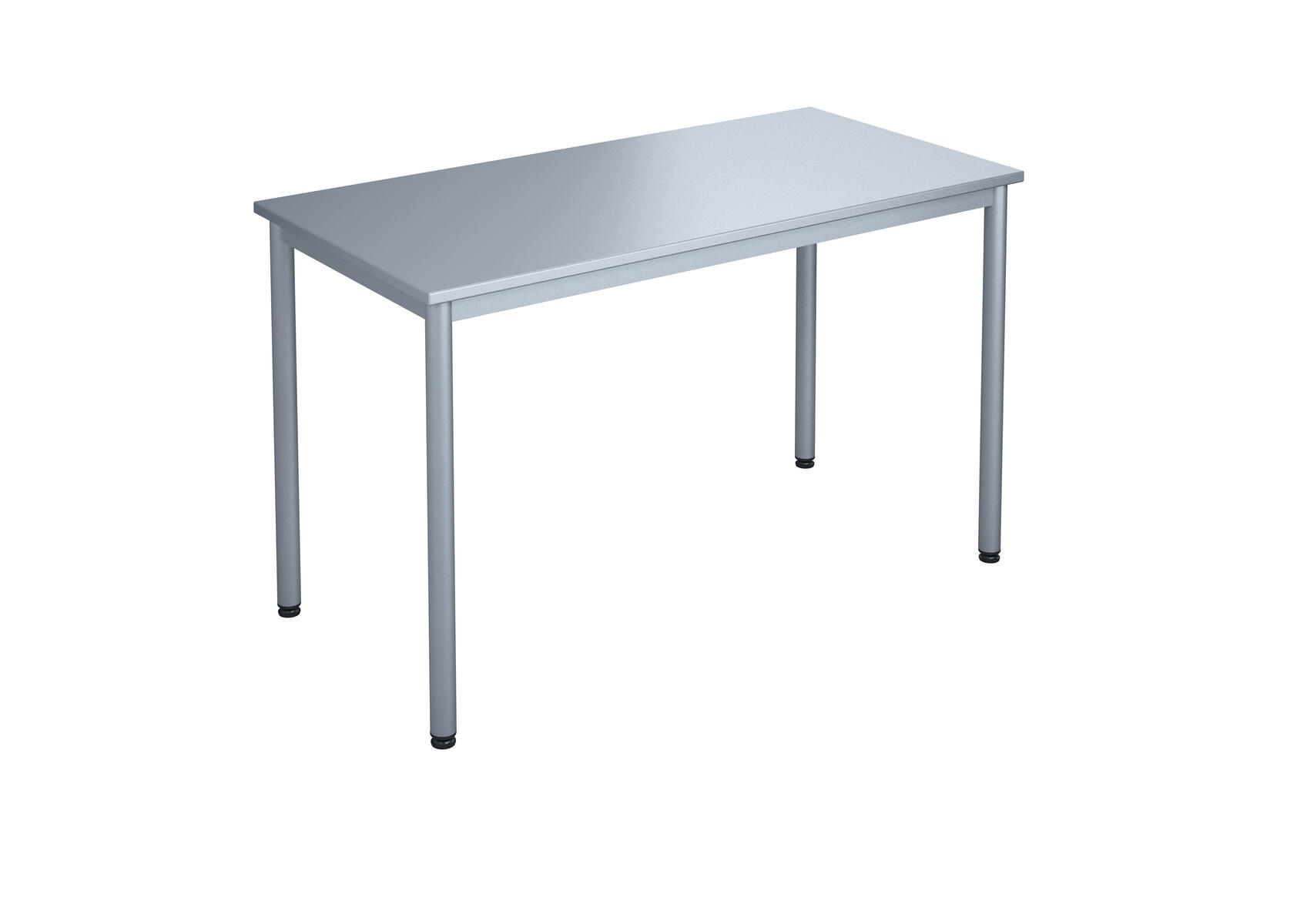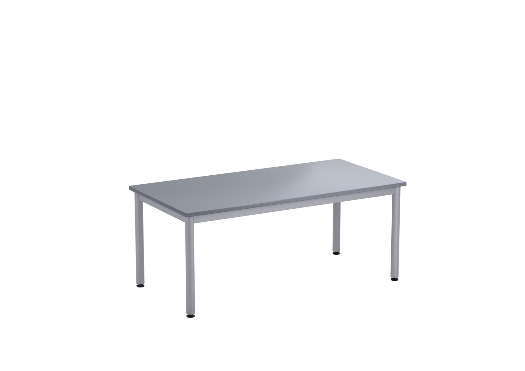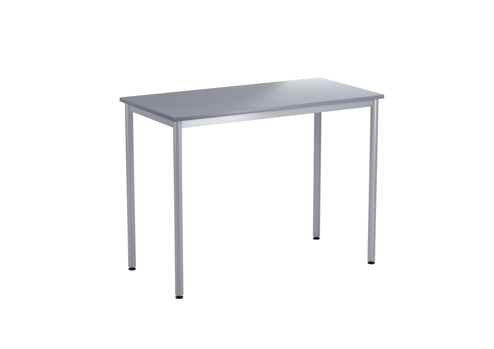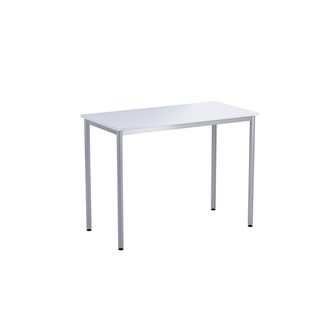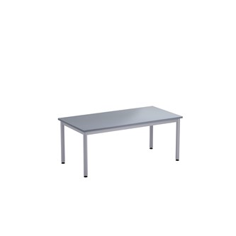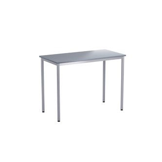 Bordsskiva i laminat. Ställbara tassar för anpassning till ojämna ytor. Stativet lackerat i silver RAL 9006.