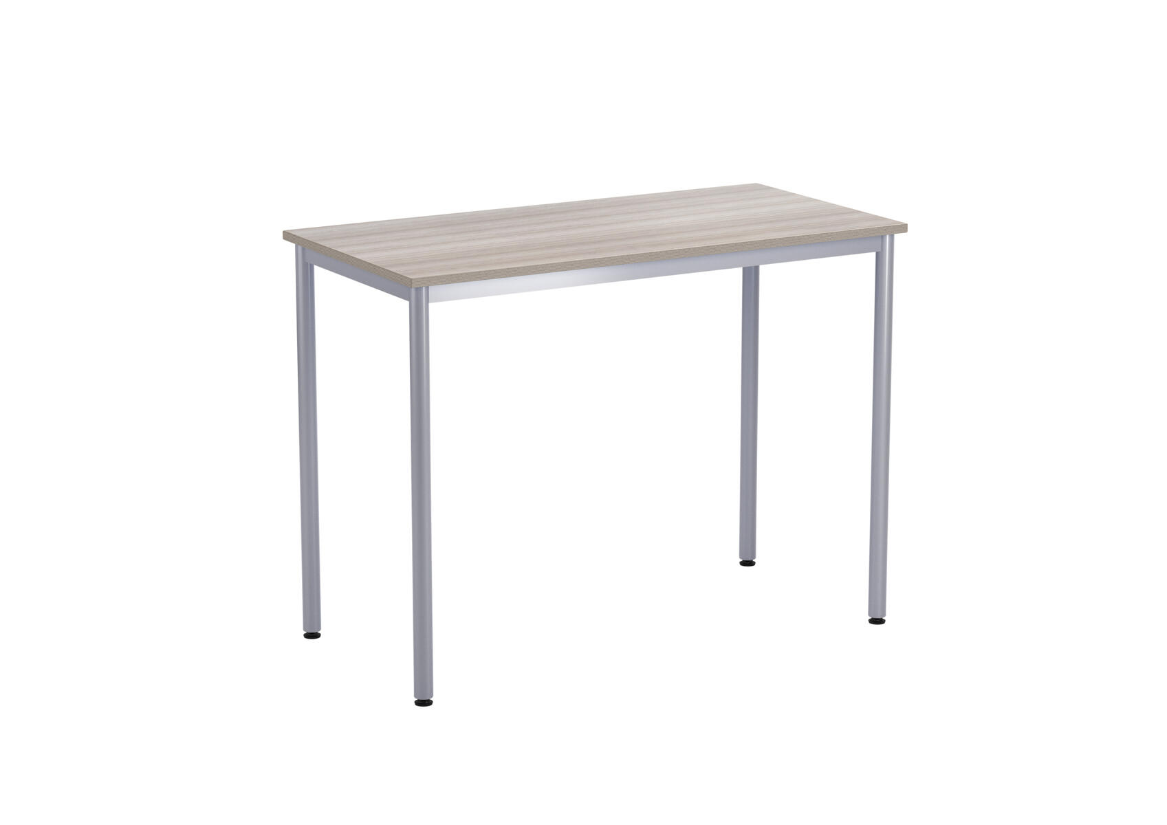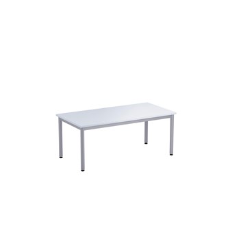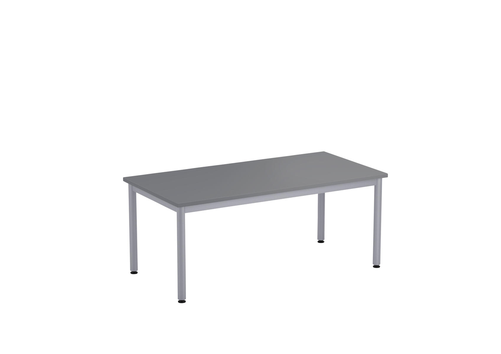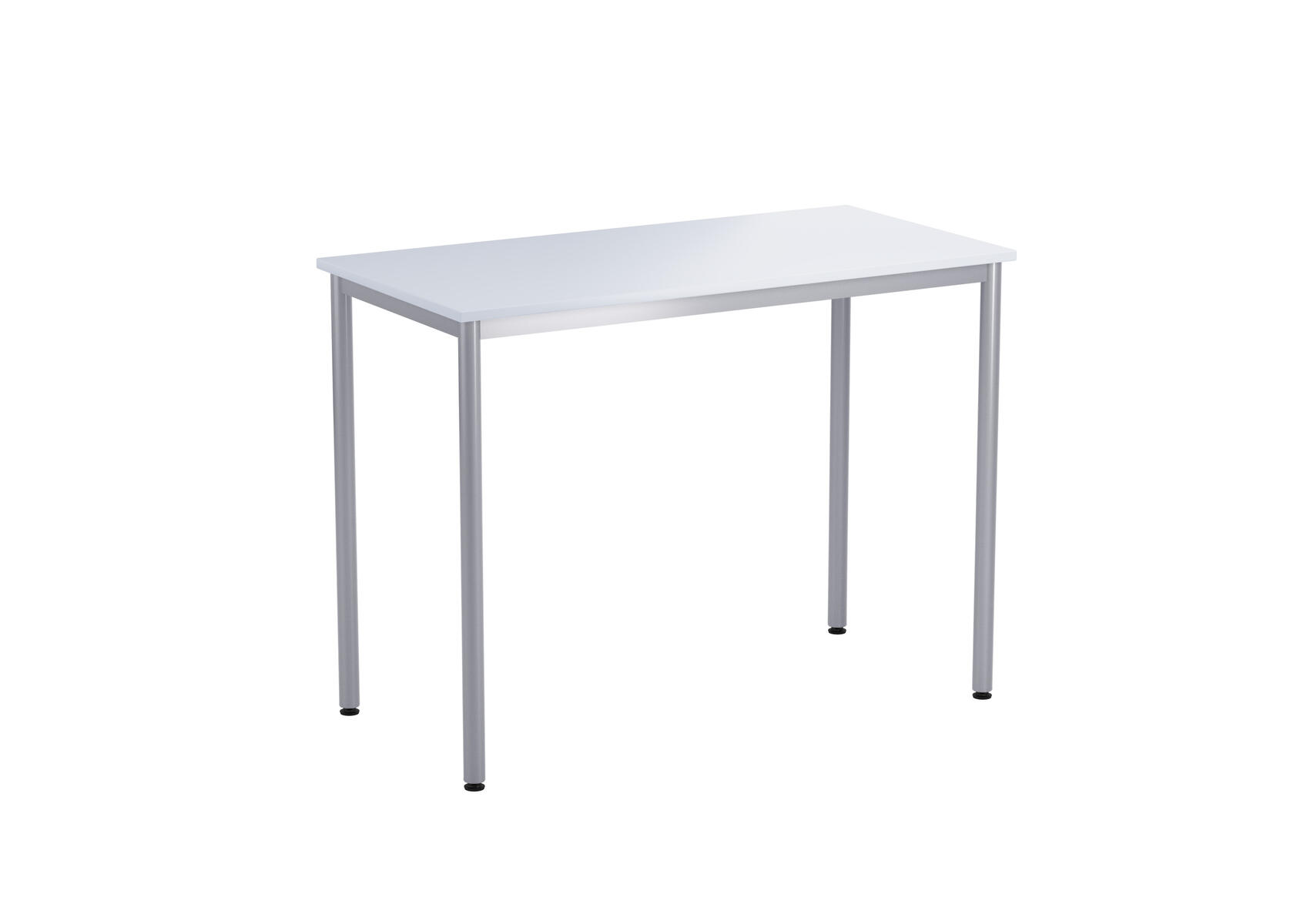 Bordsskiva i laminat. Ställbara tassar för anpassning till ojämna ytor. Stativet lackerat i silver RAL 9006.