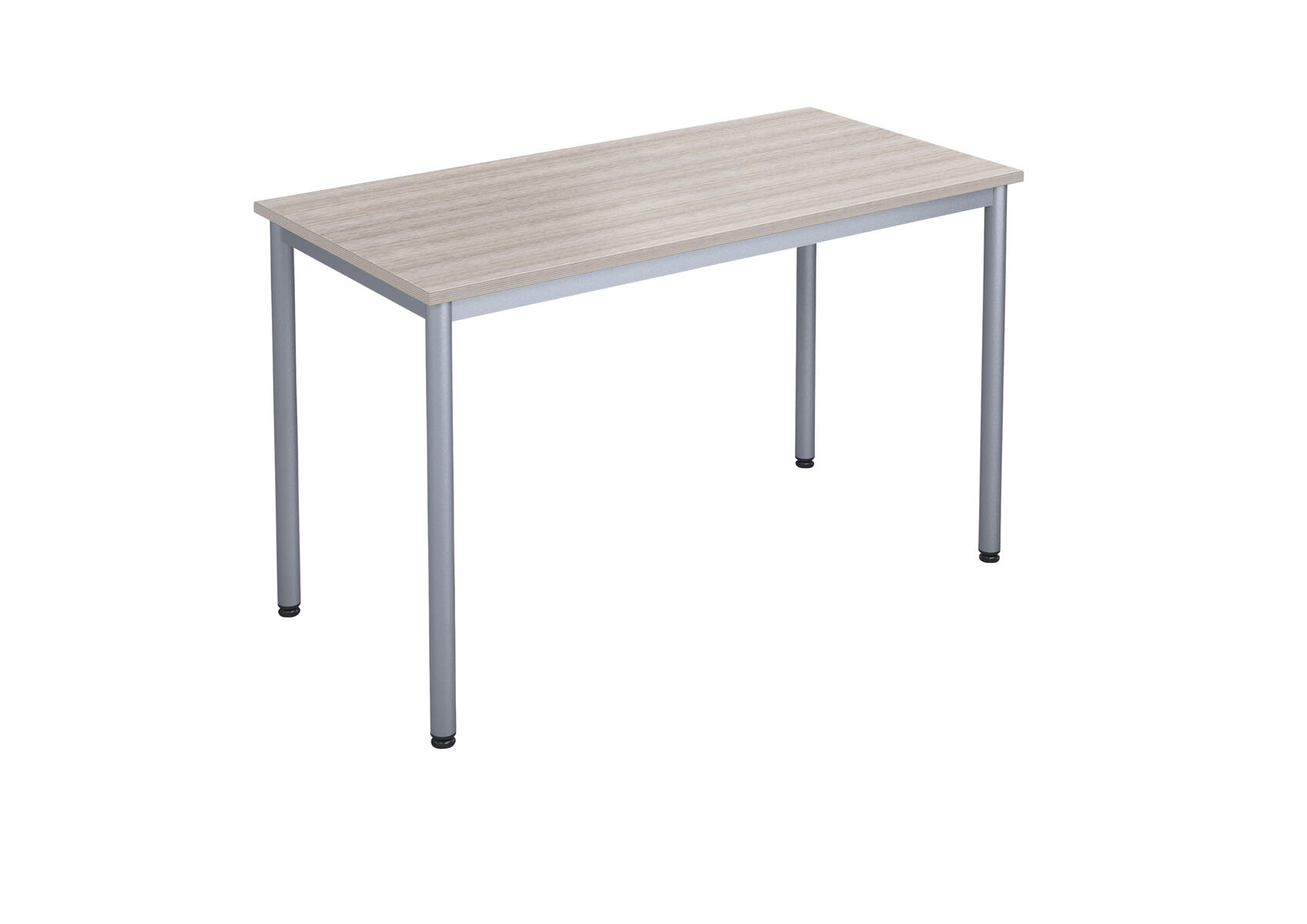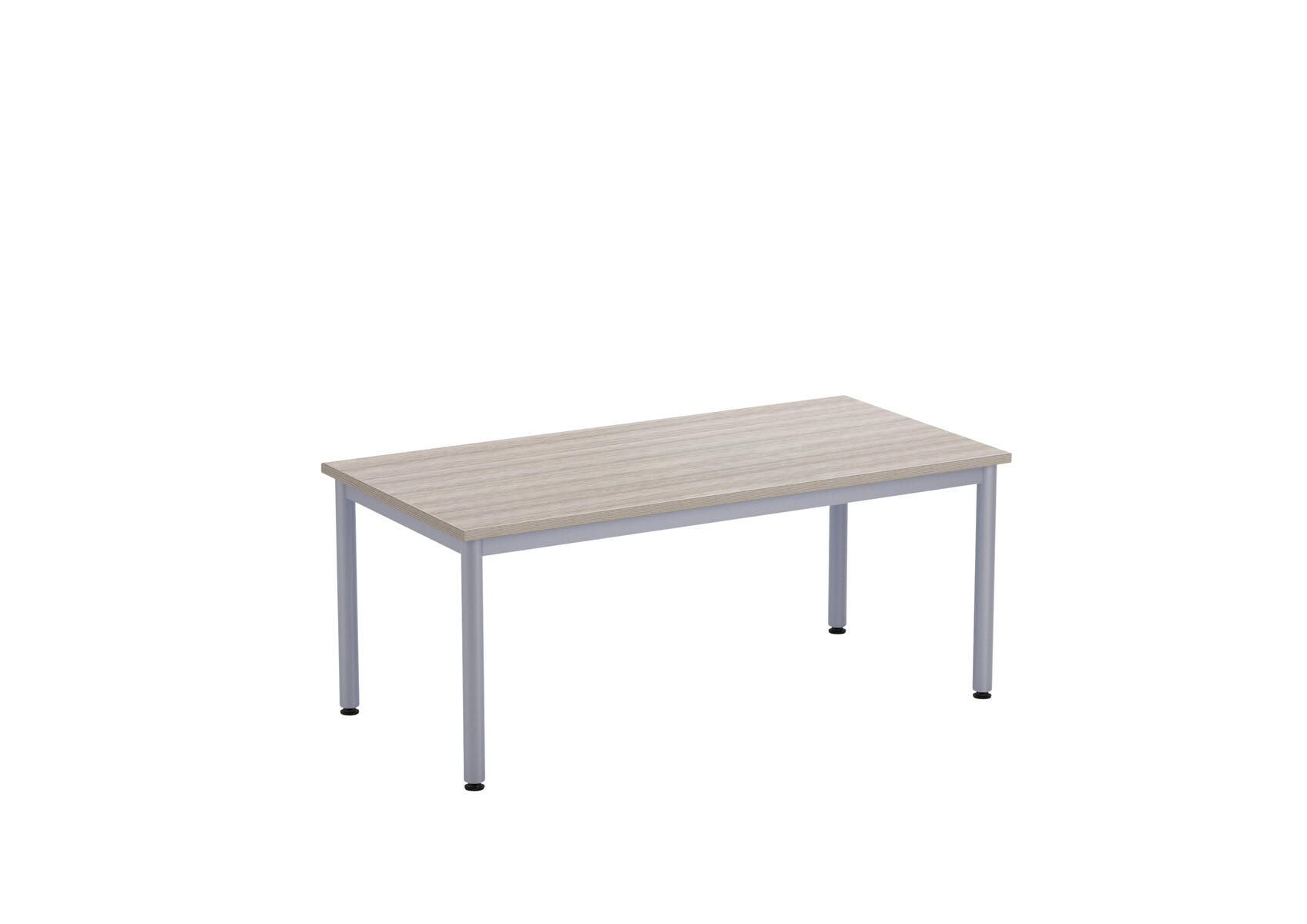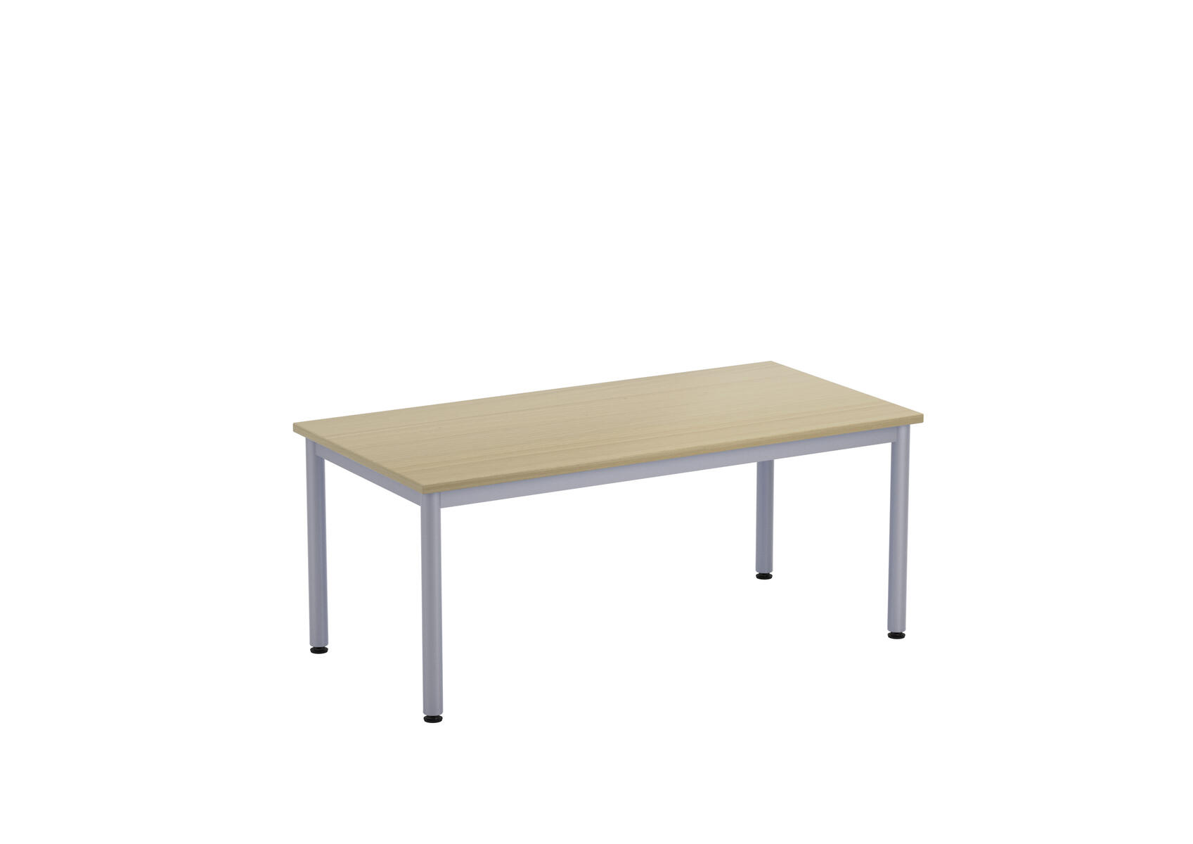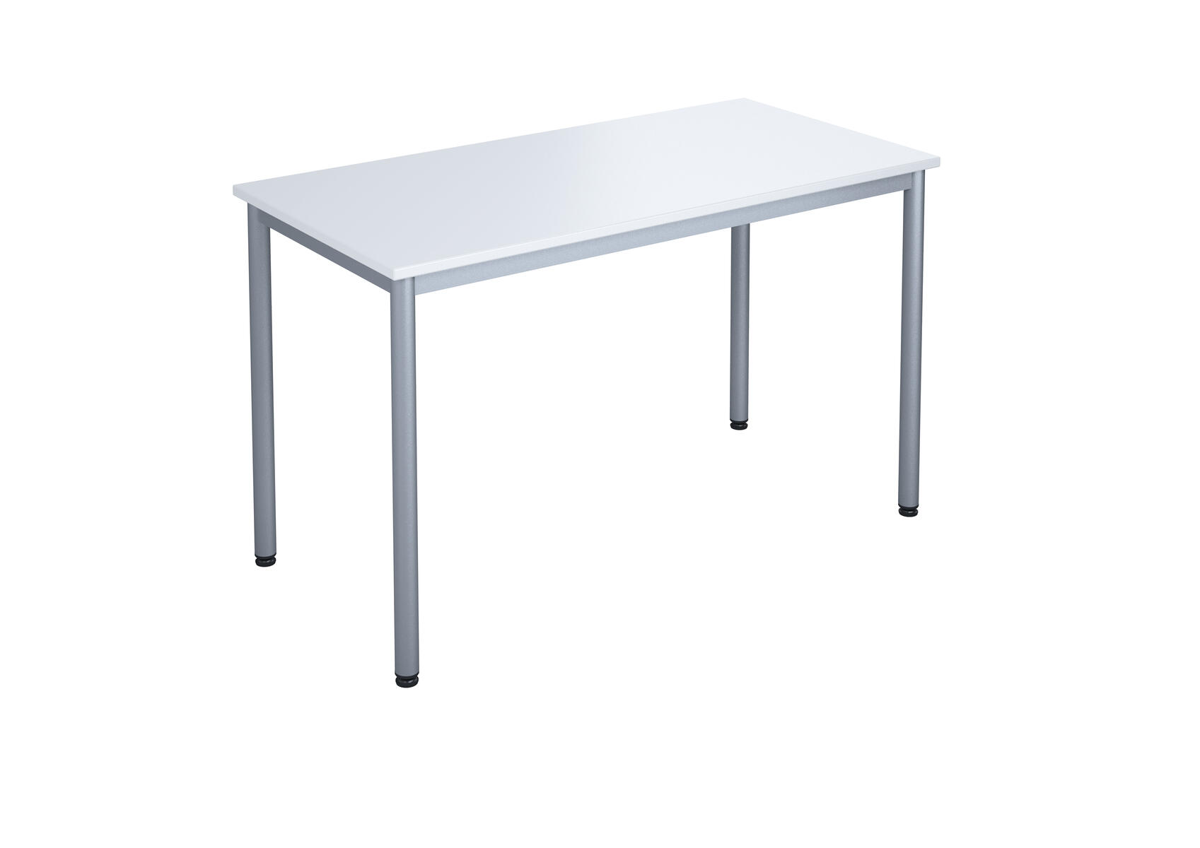 Bordsskiva i laminat. Ställbara tassar för anpassning till ojämna ytor. Stativet lackerat i silver RAL 9006.