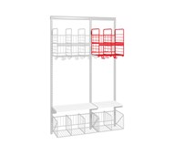 Använd till Wille skensystem. Passar till både vägghängda och fristående modeller. Enkel att justera i höjd. 3 dubbelkrokar i varje fack. Mått: B90xD32xH40 cm.