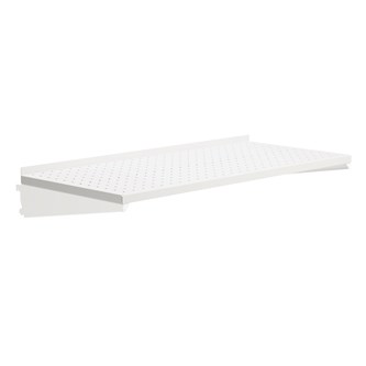 Använd till Wille skensystem. Passar till både vägghängda och fristående modeller. Enkel att justera i höjd. Skohylla i perforerad plåt med konsol, djup 32 cm. Kommer med dropplåt som effektivt samlar upp all grus och smuts.
