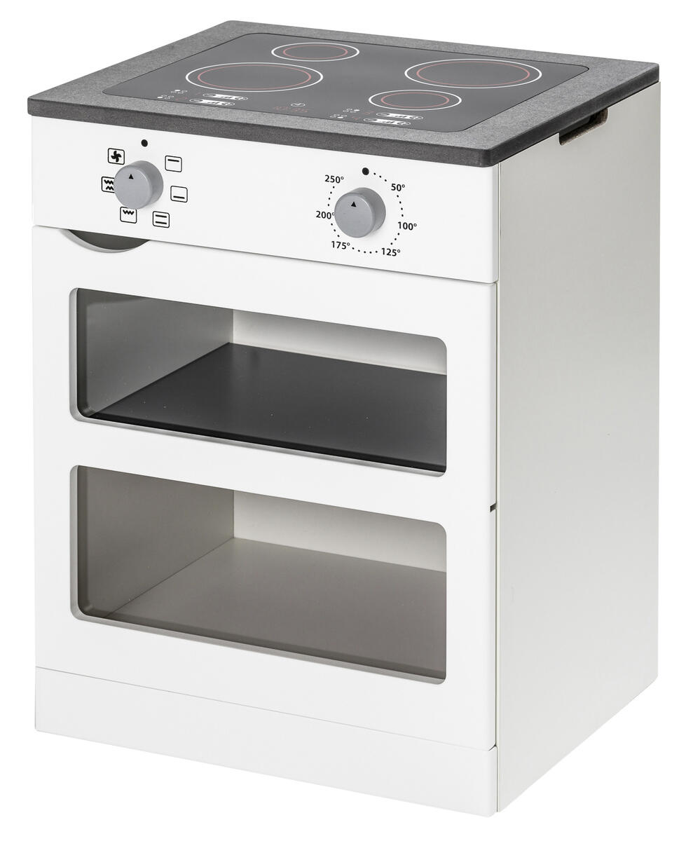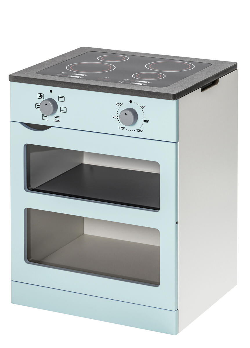 Lekspis för förskolemiljö. Komplett med induktionshäll, knappar som går att vrida på och sidhängda dörrar för optimal säkerhet vid användande. Lufthål/handtag på sidorna. Material: lucka, panel, sockel, överdel i MDF, spisplåt i 3 mm HDF, stomme i 16 mm spånskiva, spisfönster i akrylplast och spishäll i PET. Färger koordinerade till övrigt sortiment. Mått: B45xD39xH59 cm. Lämplig från 3 år. Vikt 15 kg. Levereras omonterad.