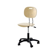 Levereras med hjul och glidfötter. Upphängningsbar. Justerbar sitthöjd 39-51 cm. Sitsmått: B40xD35 cm. Kryss i svart plast. Sits och rygg i björkfaner. Denna stol hette tidigare Trine.