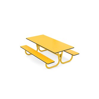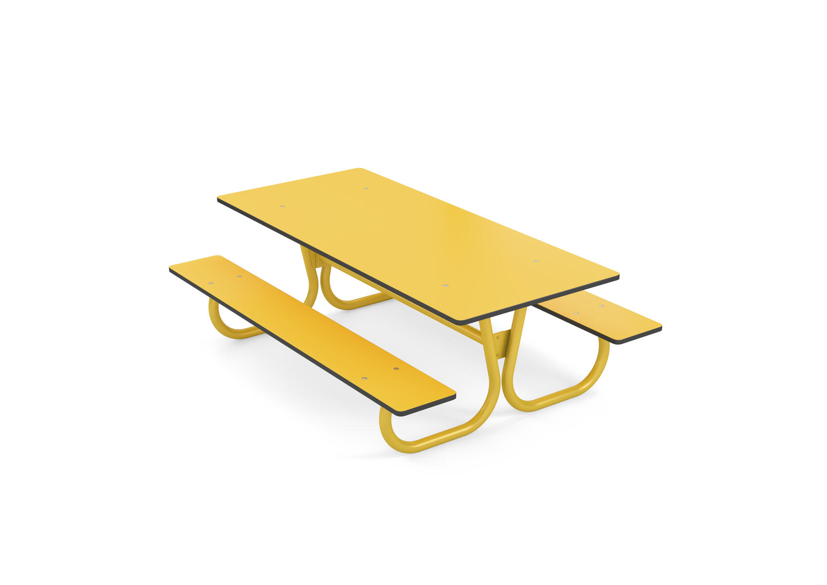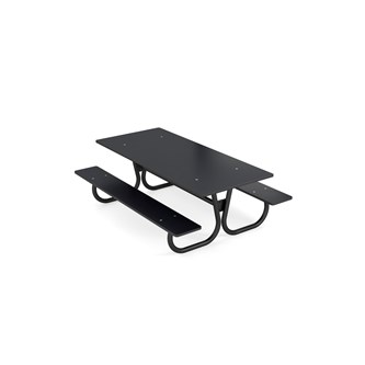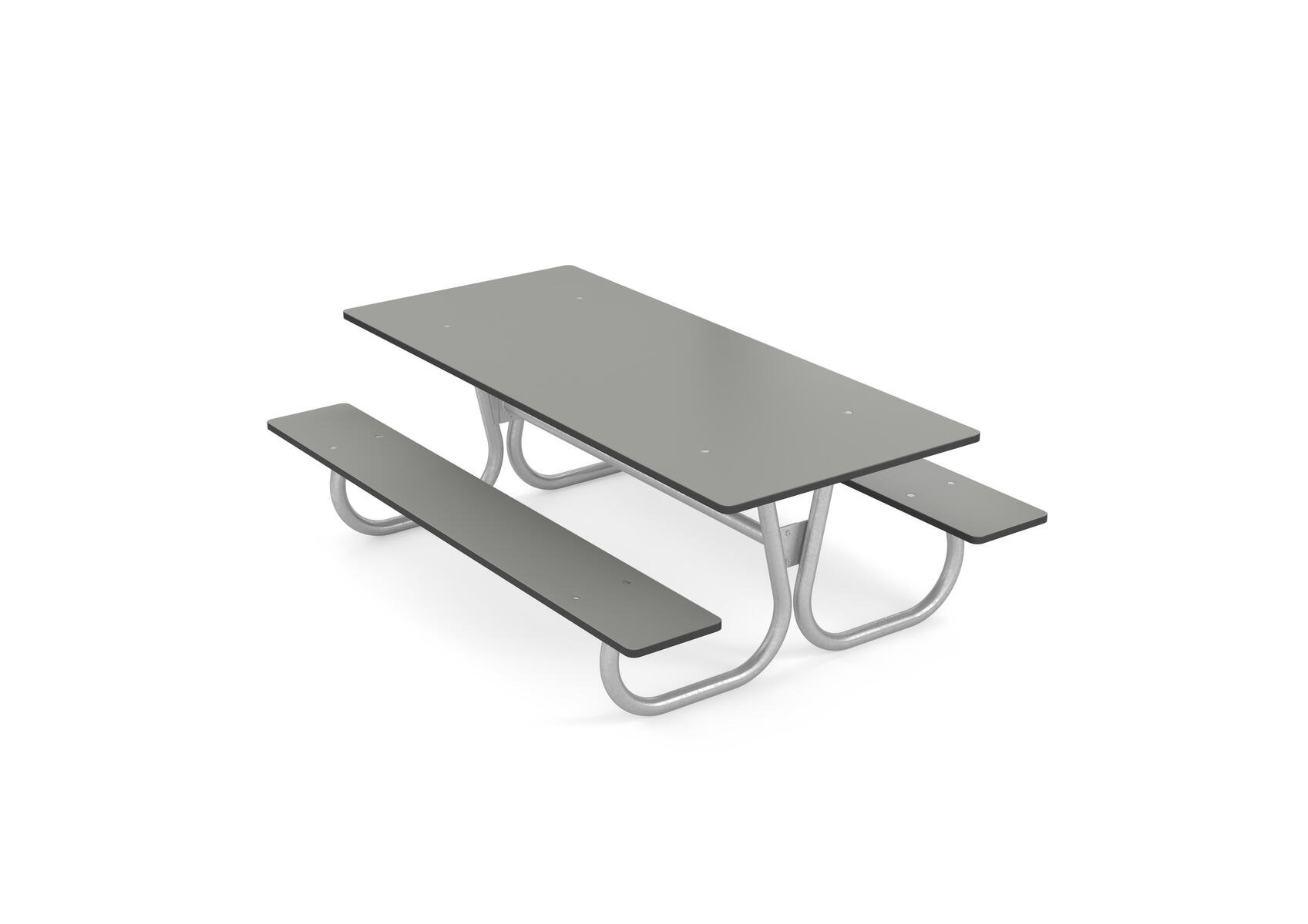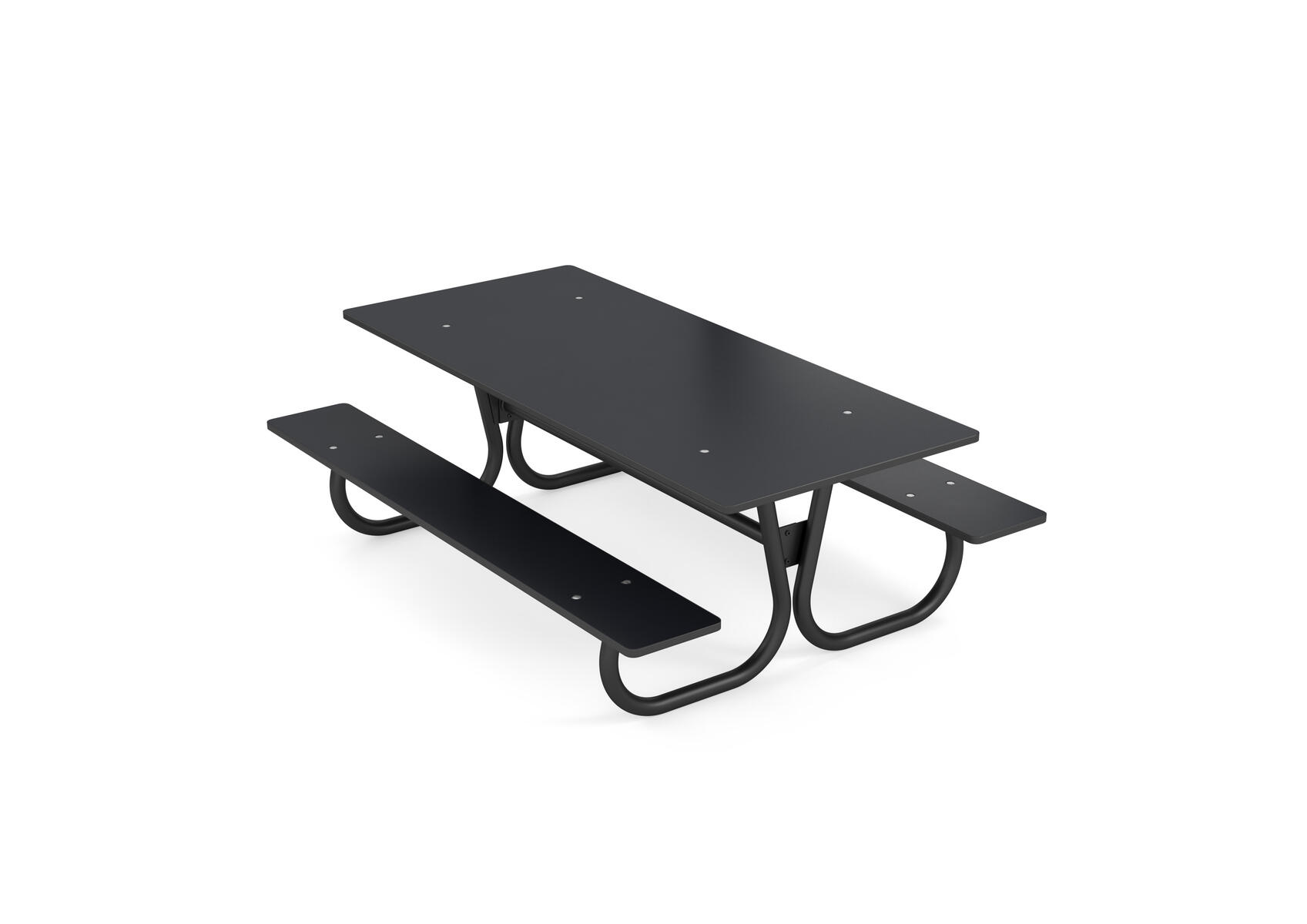Rörvik picknickbord är en serie picknickbord i två olika höjder och fem olika längder samt ett runt alternativ. Stålytorna på bänkarna är förzinkade. Bordsskiva av kompaktlaminat.
