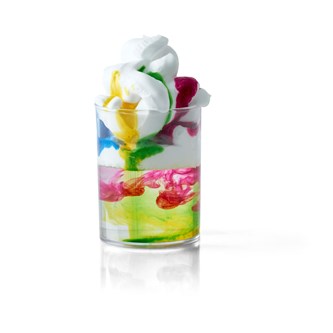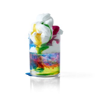 Fyll ett mätglas till hälften med kallt vatten. Spraya i raklödder som "moln".