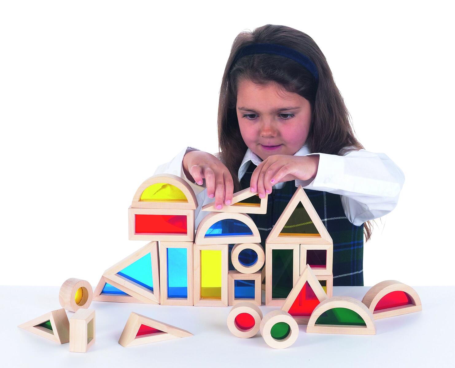 2. Inled med att låta barnen plocka och bygga fritt med blocken. Fråga och be dem berätta om vad de gör, vilka former de använder och hur.