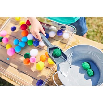 Stort set med allt du behöver för kreativt skapande eller för arbete med loose parts. Innehåller 80 piprensare, 600 plastögon i olika storlekar, 200 g paljetter i olika färger och former, 200 g facettslipade paljetter, 100 g fjädrar, 500 g knappar, 500 st pompom i blandade storlekar och färger, 230 st färgade glasspinnar och 90 st glittriga piprensare. Allt levereras i en praktisk plastback, perfekt för att flytta med i verksamheten, både inom- och utomhus. Mått på backen 40x30x19 cm. Från 3 år. PVC-fri.