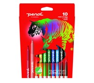 12 st/fp. Fiberpennor av god kvalitet. Med tålig, bred och rundad spets med ventilerad huv. Flödigt bläck som passar färgläggning av lite större ytor och inte blöder igenom ritpapper. Vattenbaserat bläck som går lätt att tvätta av från textilier i maskintvätt 40 °C. Längd 135 mm. ø 11 mm. Linjebredd 0,6 mm. Från 3 år. PVC-fri.