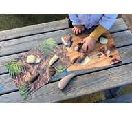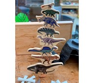 8 st/fp. Detaljrika dinosaurier av trä. På ena sidan syns dinosauriens yttre och på andra skelettet. Innehåller Ankylosaurus, Diplodocus, Iguanodon, Spinosaurus, Stegosaurus, Triceratops, Tyrannosaurus rex och Velociraptor. Mått: ca B7,7xL2,6 cm. Av FSC-märkt trä. PVC-fri. Från 18 månader.