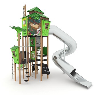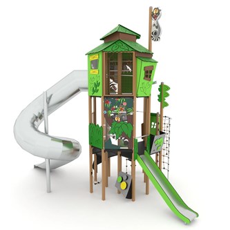 Detta aktivitetstorn med liten rutschbana får full fart på barnen och blir ett roligt inslag i utemiljön på förskolan. Denna kombination passar mycket bra för de yngre barnen som uppskattar den aktiva och äventyrliga leken och kan åka om och om igen. Jungle har många färgstarka detaljer och grafik och aktivitetspaneler med inspiration från djungeln. Monteras enligt installationsmanual. Vid installation ska alltid den medföljande manualen användas. Den senaste versionen finns att tillgå på begäran.