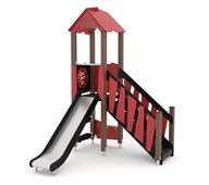 Aktivitetstorn för yngre barn med trappa, lekpaneler och rutschkana. Material: impregnerad furu, halkskyddad och vattentålig plywood, HPL/HDPE och stål. 55 cm nedgrävning. Vid installation ska alltid den medföljande manualen användas. Den senaste versionen finns att tillgå på begäran. Leverantörens artikelnummer WOODEN WD1502