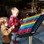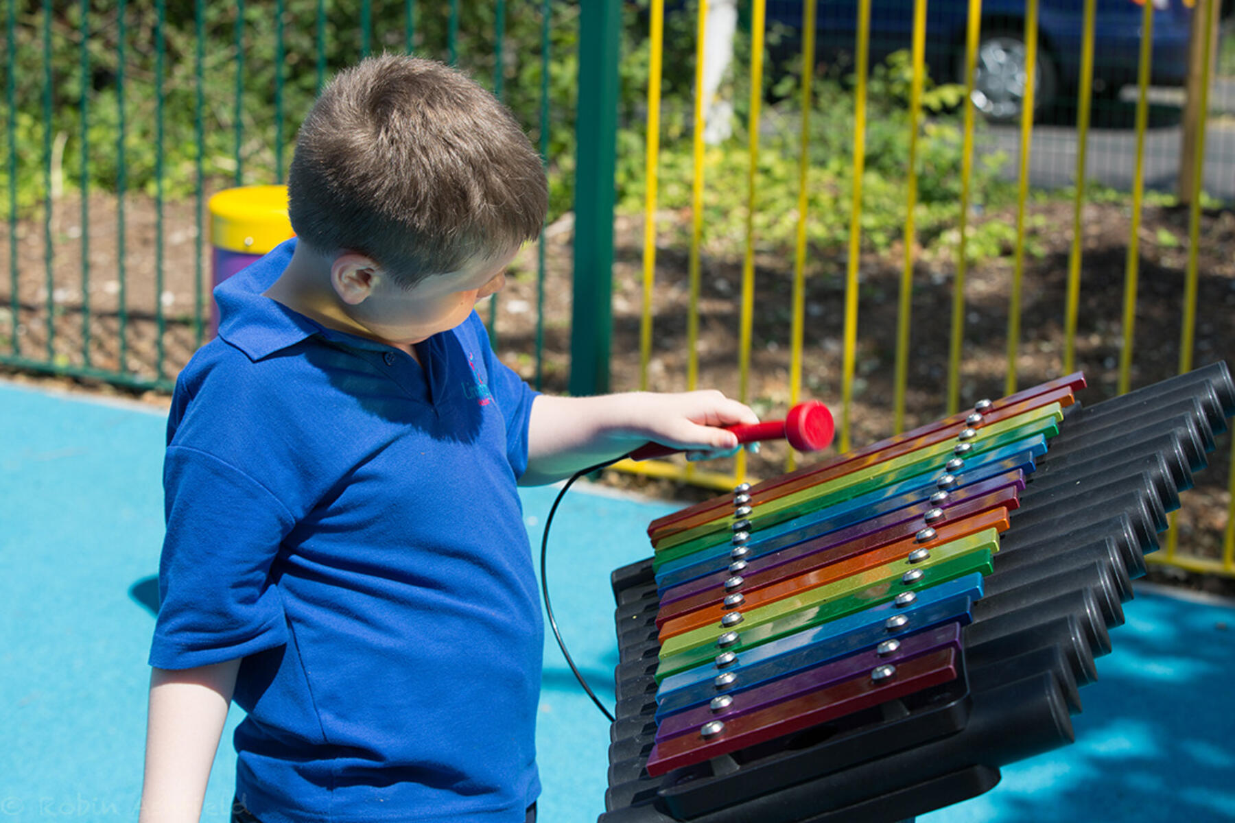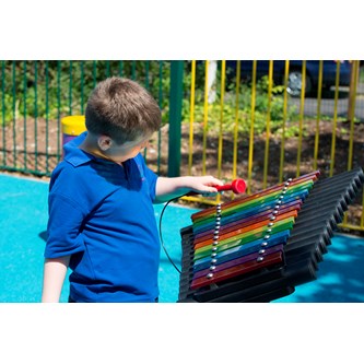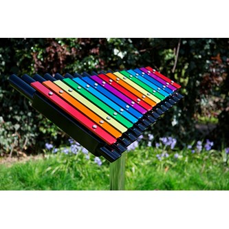 Tre par congas för utomhusbruk. Monterade på stolpe av rostfritt stål. Trumskinn av slitstark ABS.