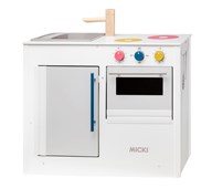 Ett lekkök med många olika funktioner som spishäll, ugn, rörliga vred, öppningsbara luckor, diskho samt bra hyllförvaring. Höga ben förenklar städning. Av FSC-märkt MDF. Diskbalja av PP. Levereras omonterad. Ska förankras i vägg. Mått: B78xD37xH101 cm. Från 2 år.