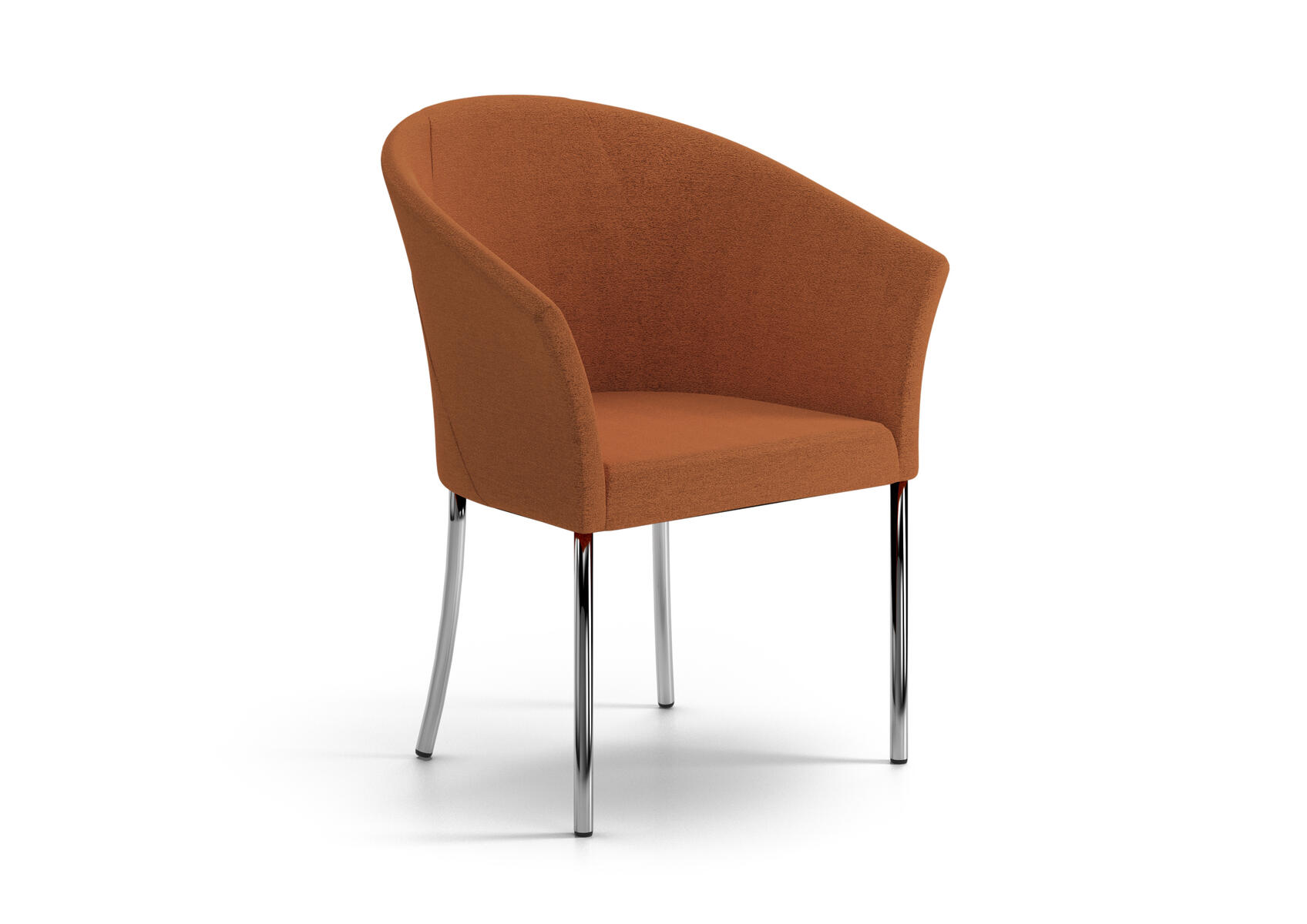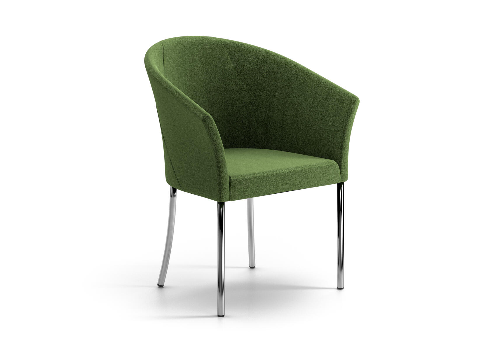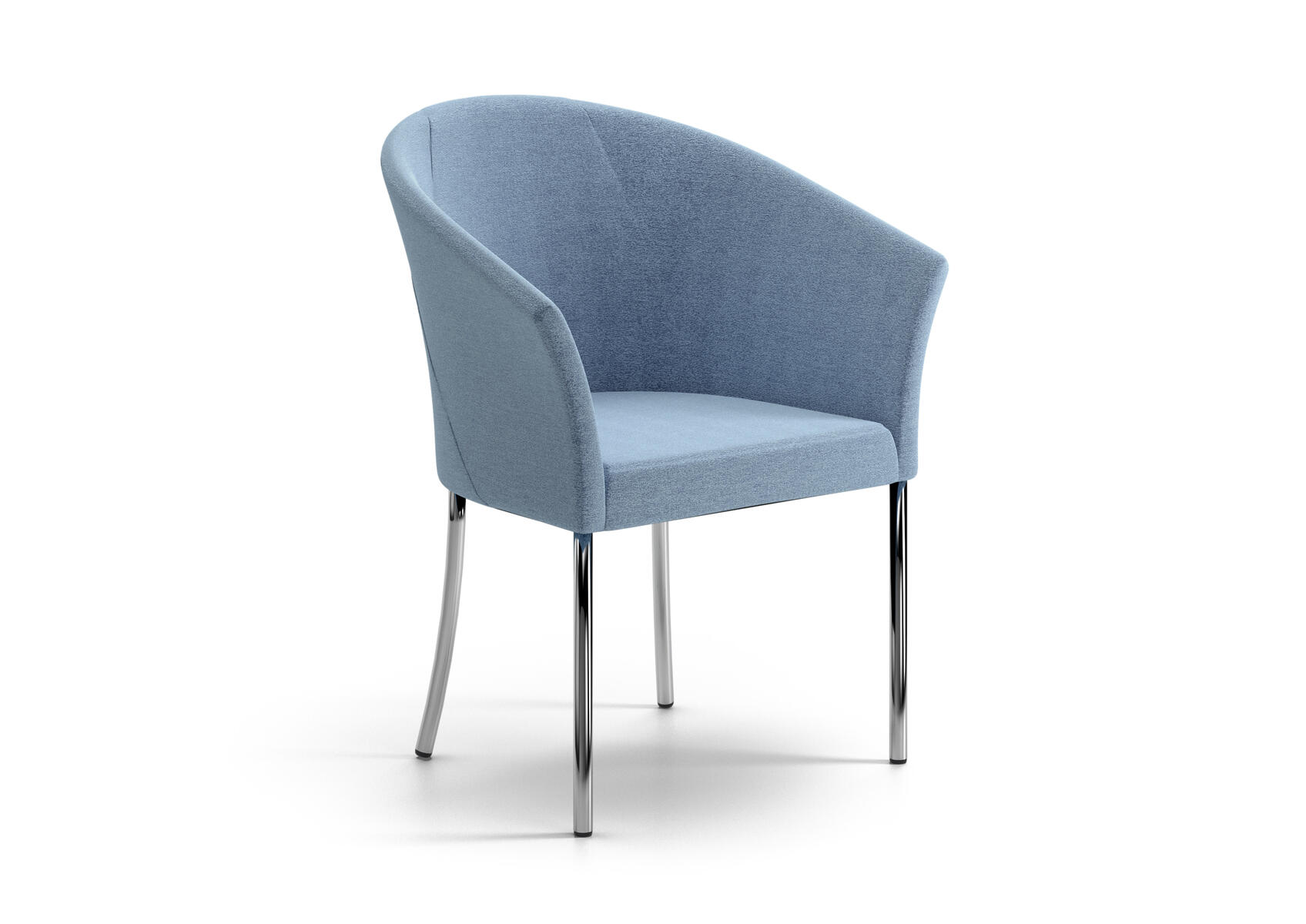En fåtölj med modern design och generös komfort. Stabilt pulverlackat medstativ av ø 11 mm rör med filtbelagda möbeltassar för att skydda golvet. Trästomme och stoppning i kallskum. För ytterligare komfort erbjuds även nackstöd som ett tillval.