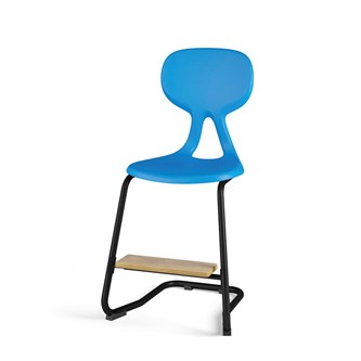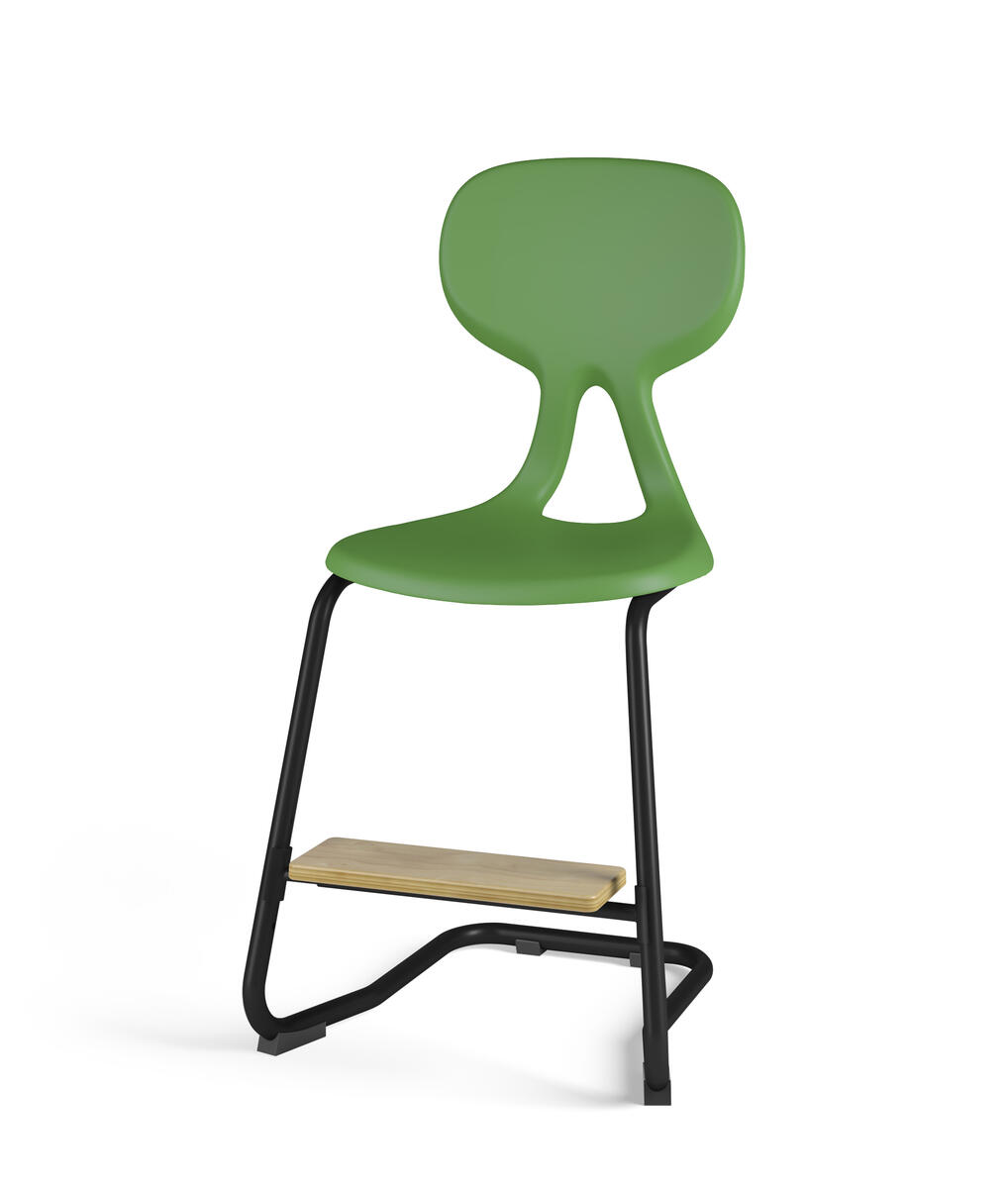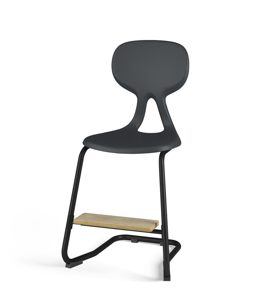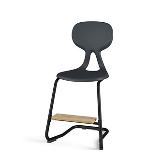 Det ergonomiska utförandet hjälper användaren till en bättre hållning och ger ett flexibelt stöd för ryggen. Stapelbar med max 4 stolar och upphängningsbar när man vänder den. Lätt att rengöra. Skal i polyuretan. Svartlackerat stativ RAL 9005. Mått: Sitthöjd 45 cm. Sitsbredd 38 cm. Sitsdjup 34 cm. Inklusive justerbart fotstöd.