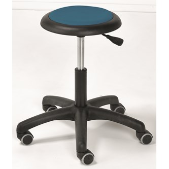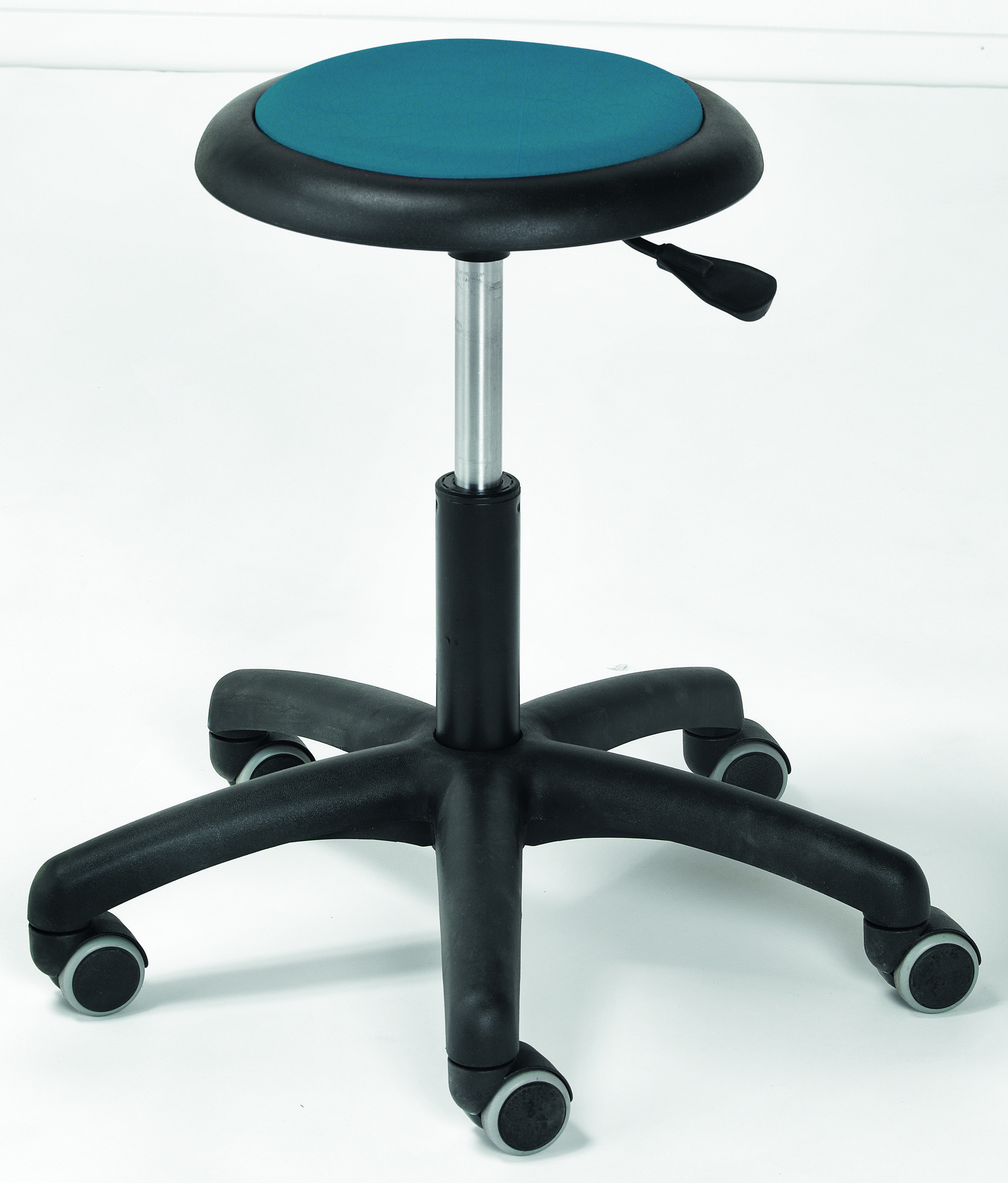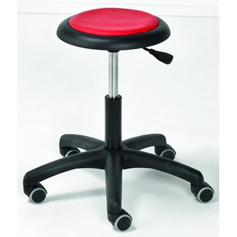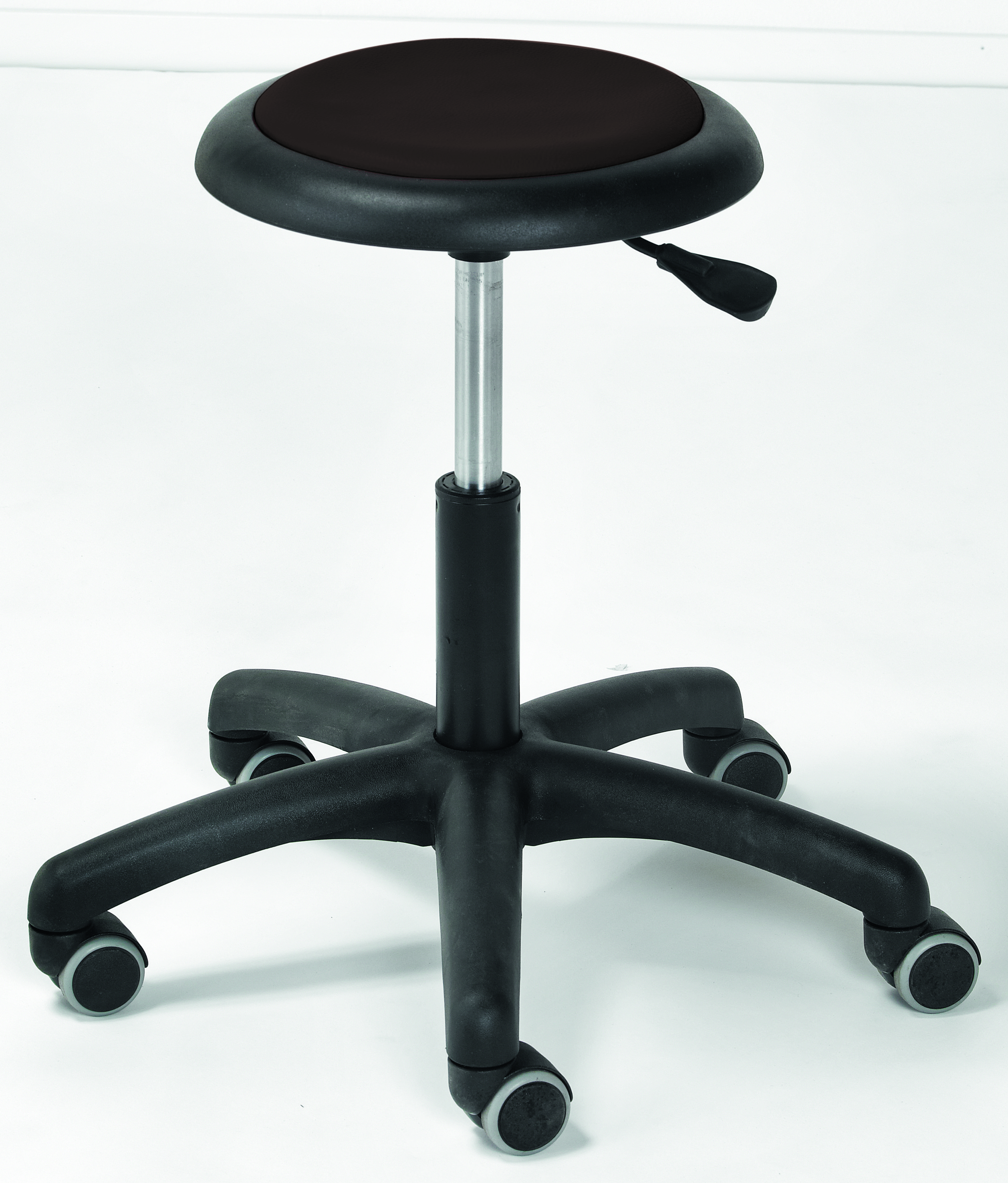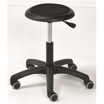Rullpall med sits i slitstarkt integralskum. Justerbar höjd med gaspatron 40–50 cm. Levereras med hjul och glidfötter.