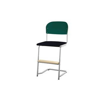 Stapelbar (max 4 st/stapel). Ljuddämpande tassar. Upphängningsbar på bord. Reglerbar fotbräda i 3 fasta lägen. Sitthöjd: 63 cm. Sitsmått: B42xD39 cm. Totaldjupet på stativet är 54 cm. Vikt 7,4 kg. Sits och rygg i högtryckslaminat. Silverlackerat stativ RAL 9006.