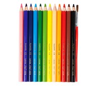12 st/fp. Färgpennor som passar för både torr färgläggning och akvarellmålning. Extra mjukt, hållbart färgstift av kvalitetspigment. Färgerna är blandbara med varandra, vilket ger en akvarelleffekt när man målar över med vatten. Hexagonal pennkropp med lackerad topp. Finns i färgerna lila, aprikos, orange, mörkgrön, grön, mörkblå, blå, röd, rosa, svart, gul, brun och en pensel. FSC-märkt. PVC-fri.