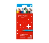 12 st/fp. Hexagonala vattenlösliga färgpennor av hög kvalitet. Passar både för torr färgläggning och akvarell. 12 olika färger. Hellimmat färgstift 3,3 mm i diameter, med extra mycket färgpigment. Längd 180 mm. Tillverkade av PEFC-certifierat cederträ. Levereras i metalletui tillsammans med en pensel av syntetborst.